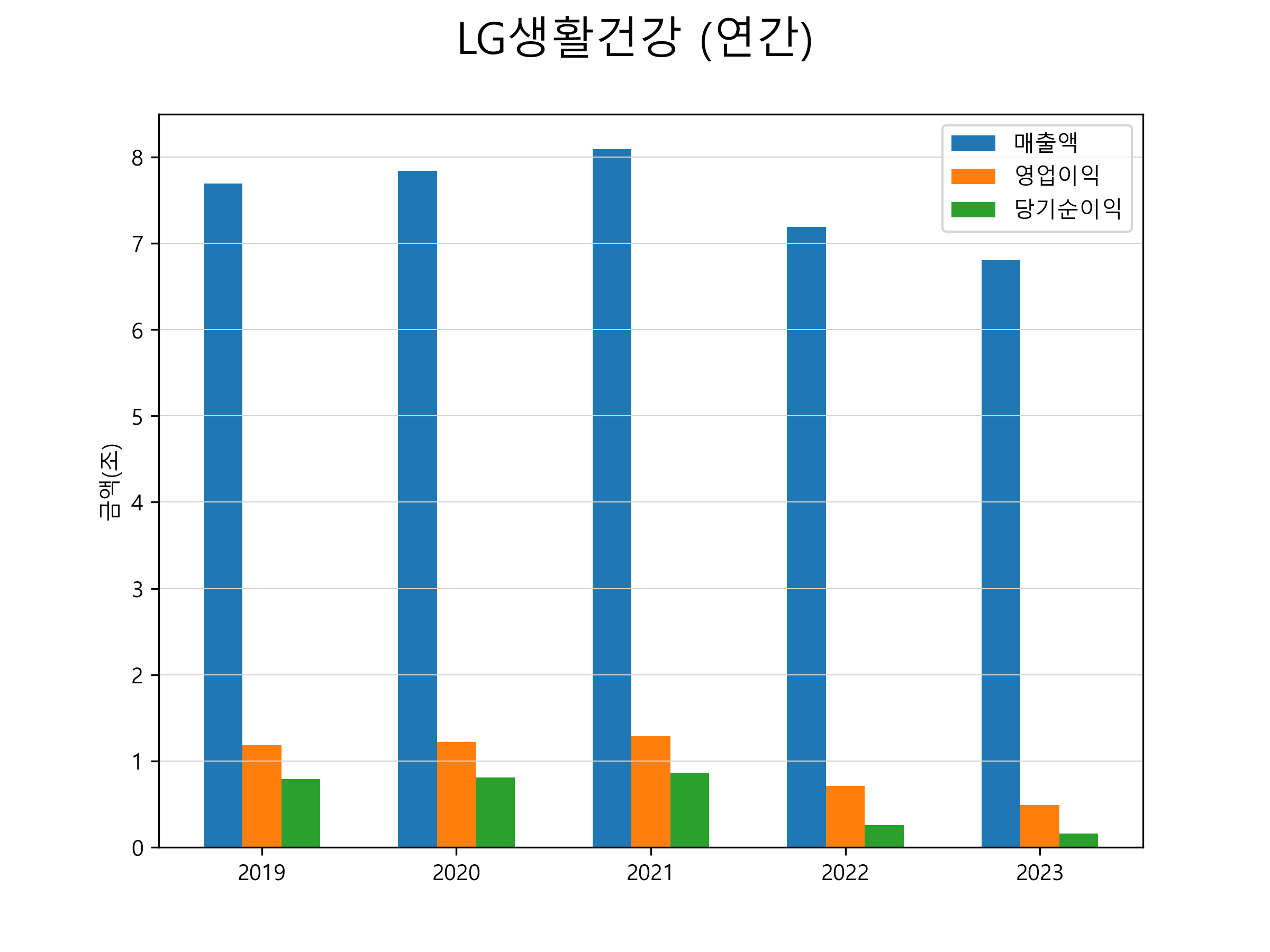 | 매출액 | 7조 6854억 | 7조 8445억 | 8조 0915억 | 7조 1858억 | 6조 8048억 |
