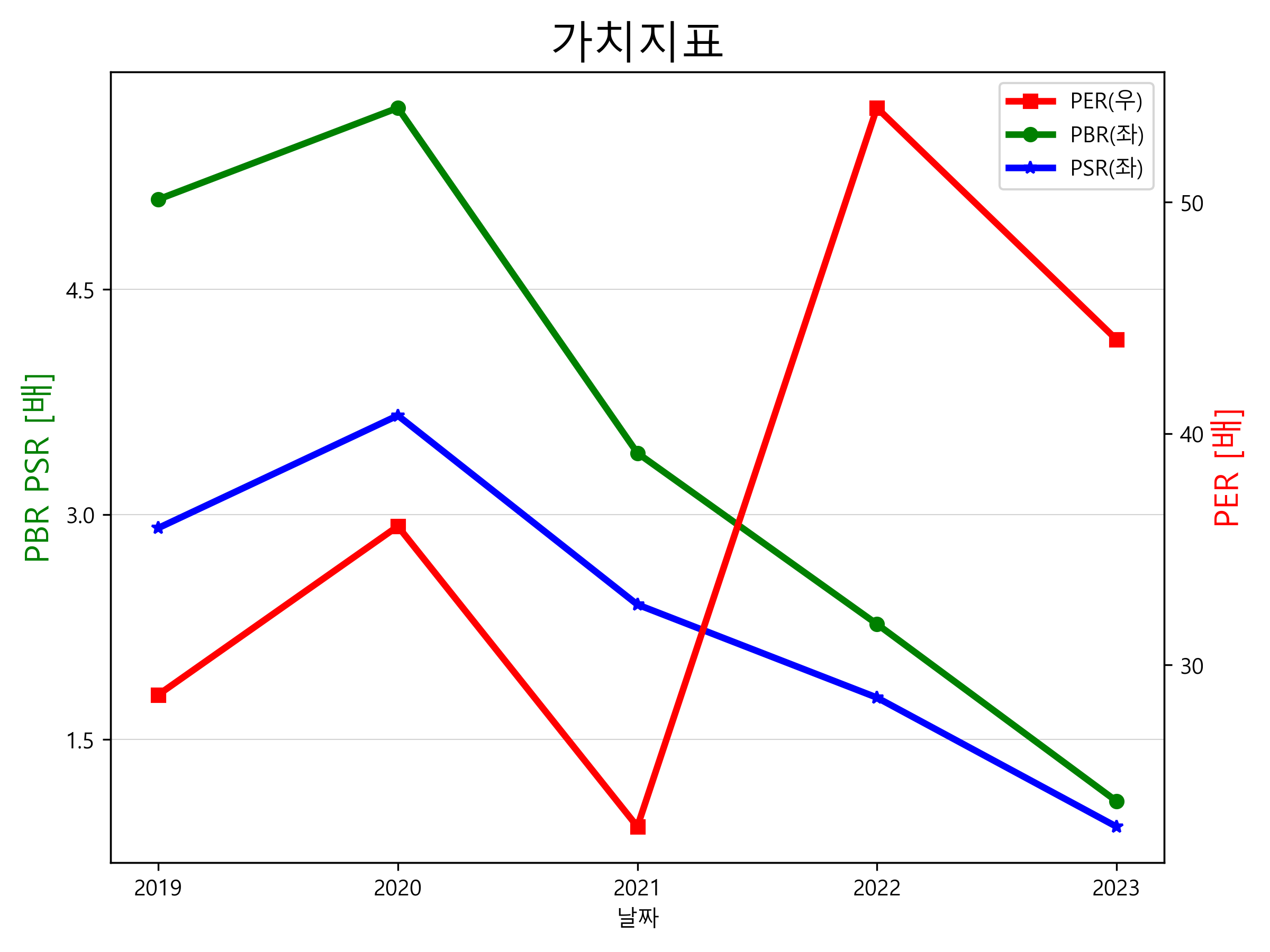 LG생활건강의 PER, PBR, PSR입니다.