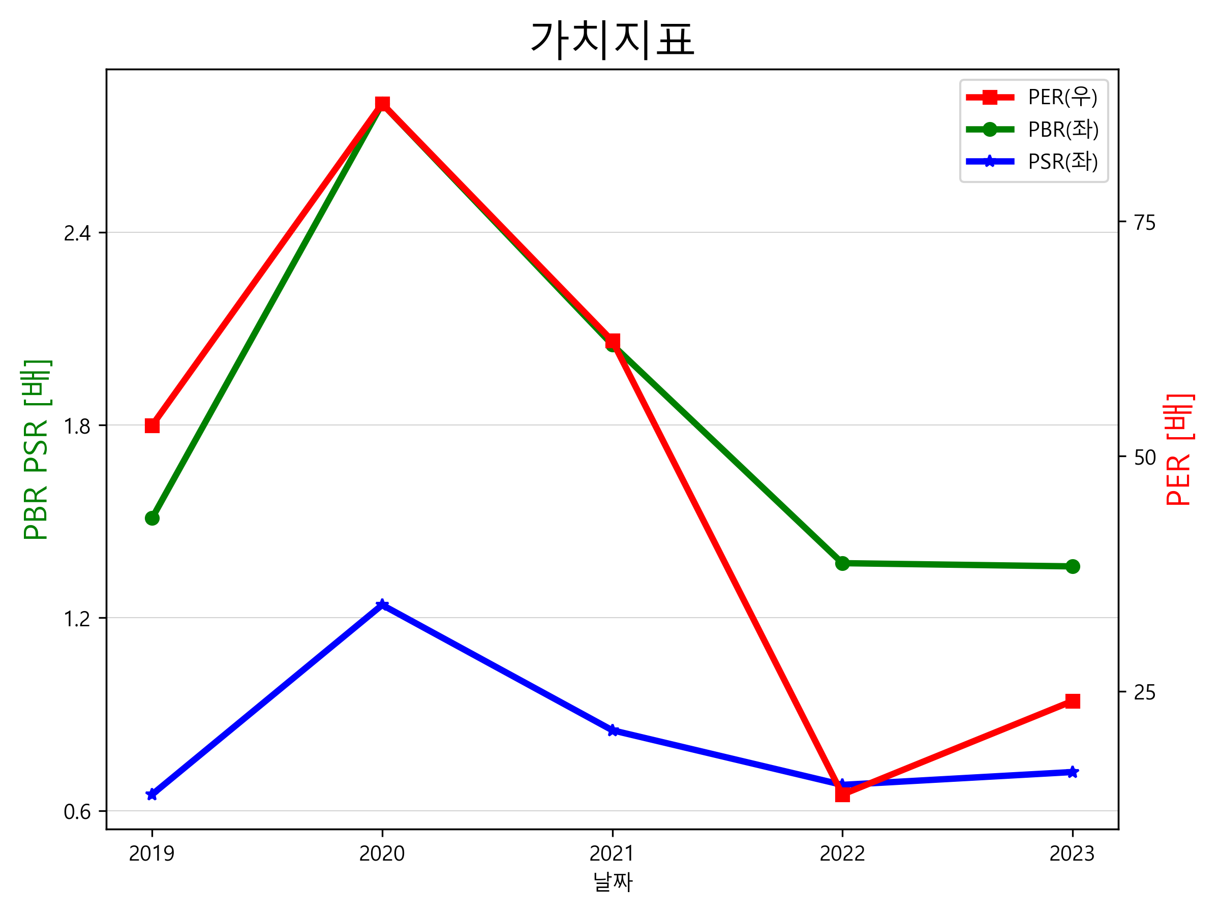 - PER : 29.71배, 동일업종 PER : 13.25배