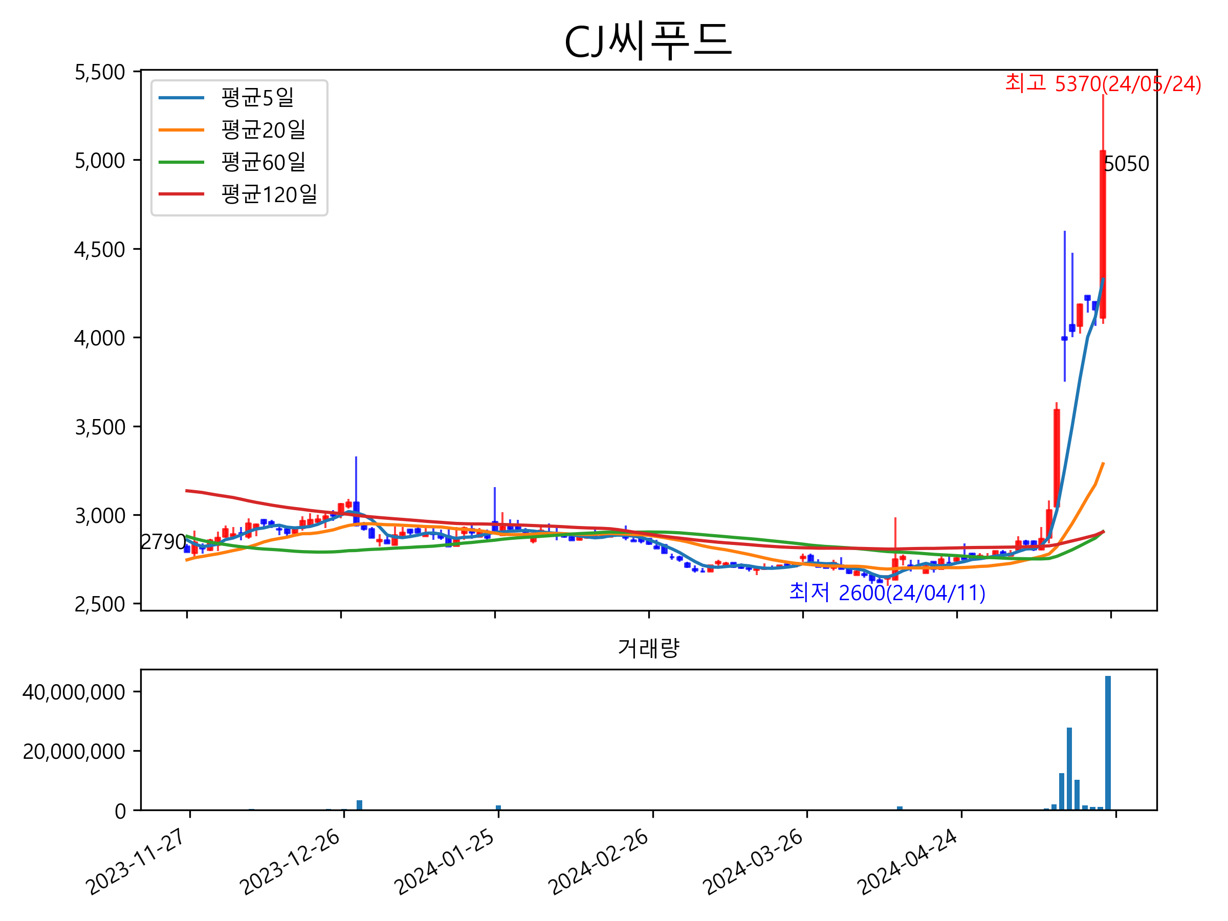 CJ씨푸드(011150)의 5월 24일 주가가 급등했습니다. CJ씨푸드에 대해 어떠한 기업이며, 주식정보 및 주가 급등 이유에 대해서 알려드리겠습니다.