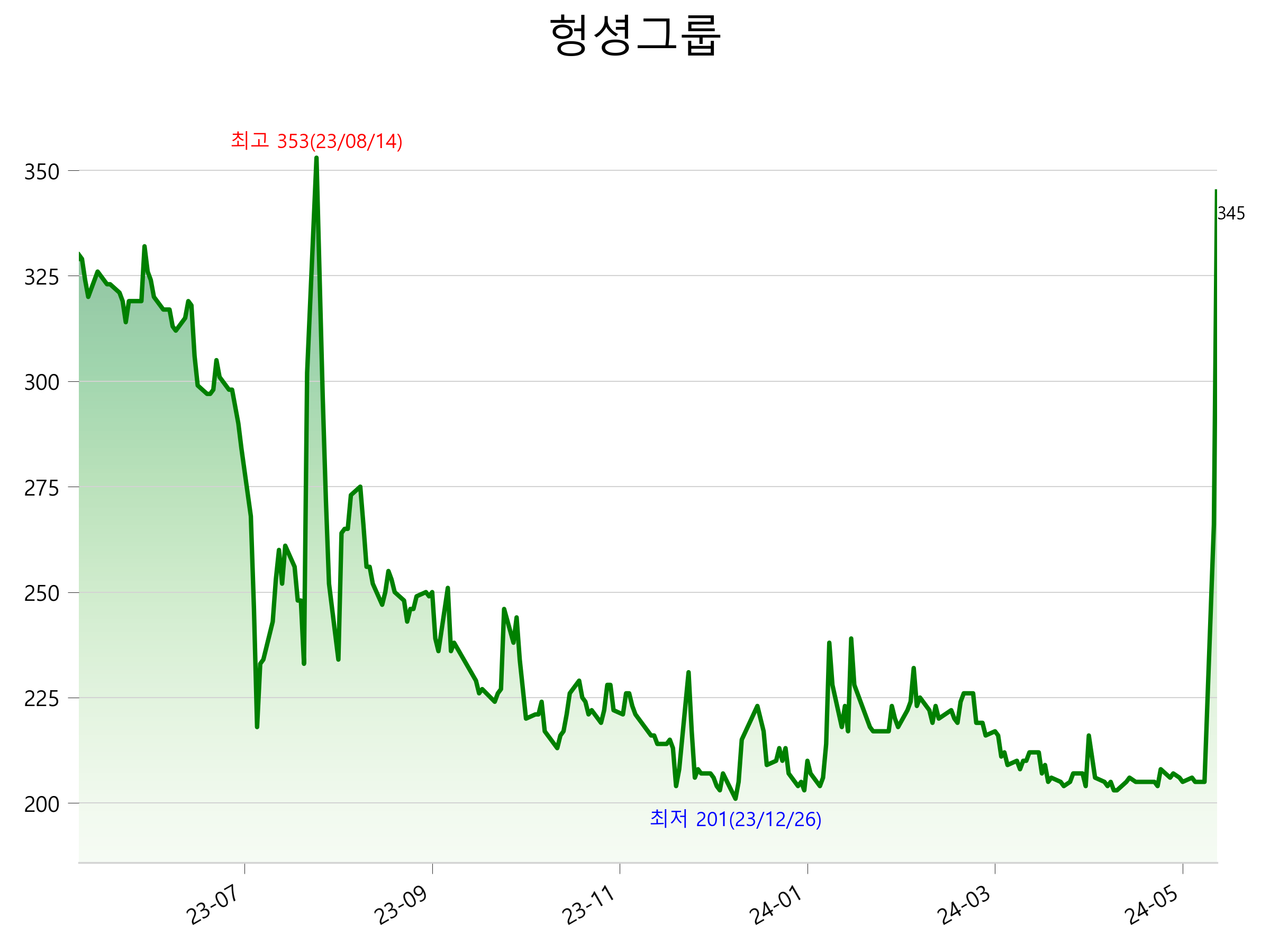 5월 28일 기준 주가는 345원 입니다. 아래는 최근 1년간의 주가흐름입니다.