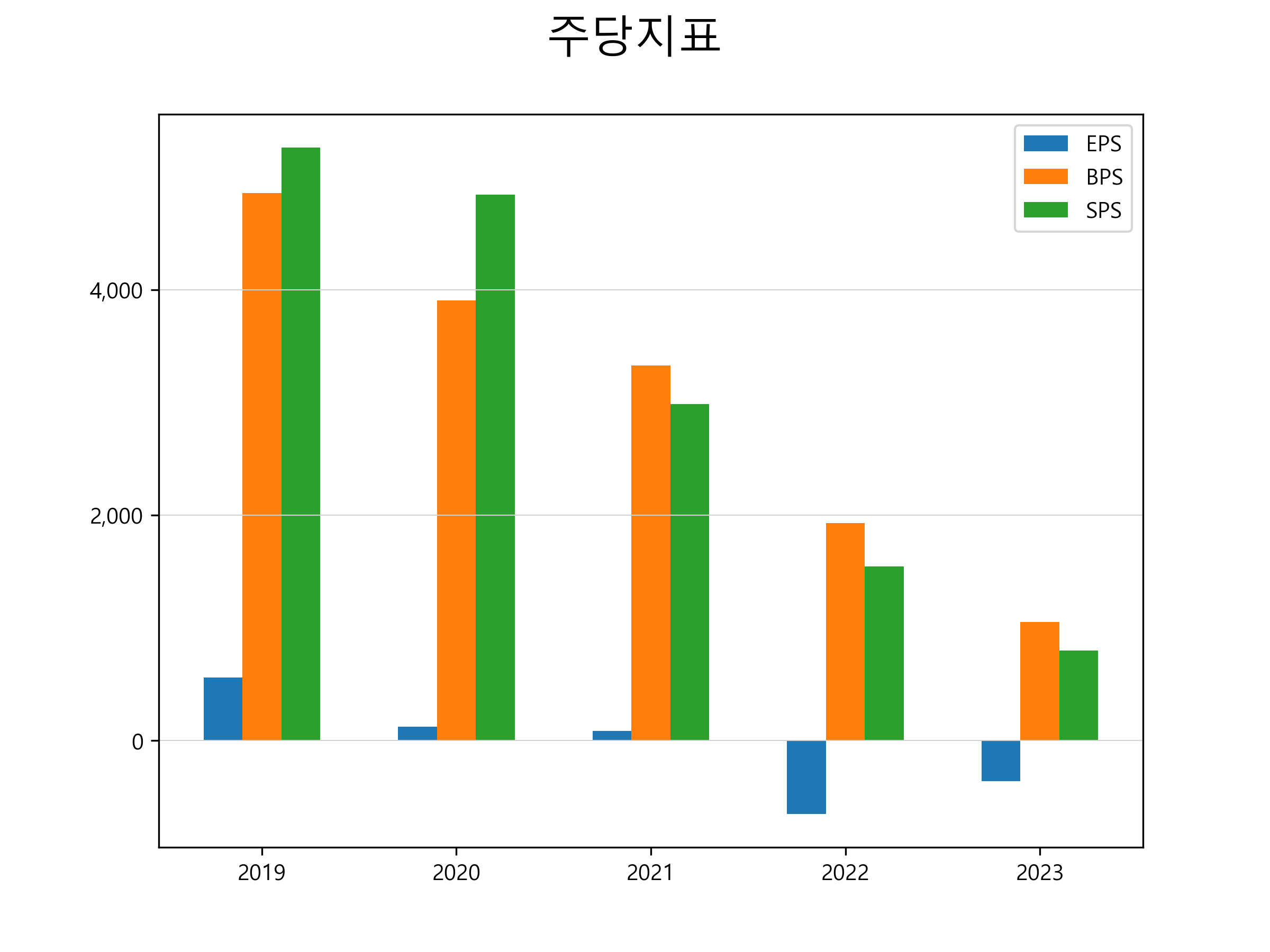 ※ EPS 주당 순이익, BPS 주당 순자산, CPS 주당 현금흐름, SPS 주당 매출액, PER 주가수익비율, PBR 주가순자산비율, PCR :주가현금비율, PSR 주가매출비율, DPS 주당배당금