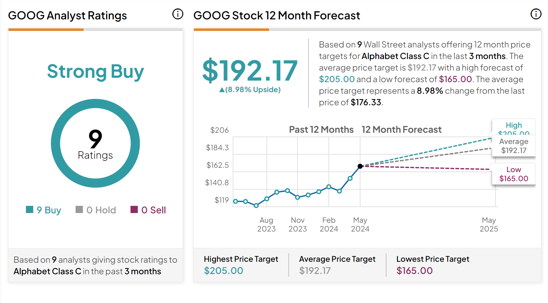 팁랭크스(Tipranks)에서 알파벳 의 투자의견입니다. 지난 3개월 동안 총 37명의 애널리스트가 목표가를 추정하였습니다. 목표주가는 $197.53로 현재주가 $174.99보다 12.88% 상승할 것으로 전망했습니다. 가장 높은 목표주가는 $225.00이며, 가장 낮은 목표주가는 $168.00입니다.