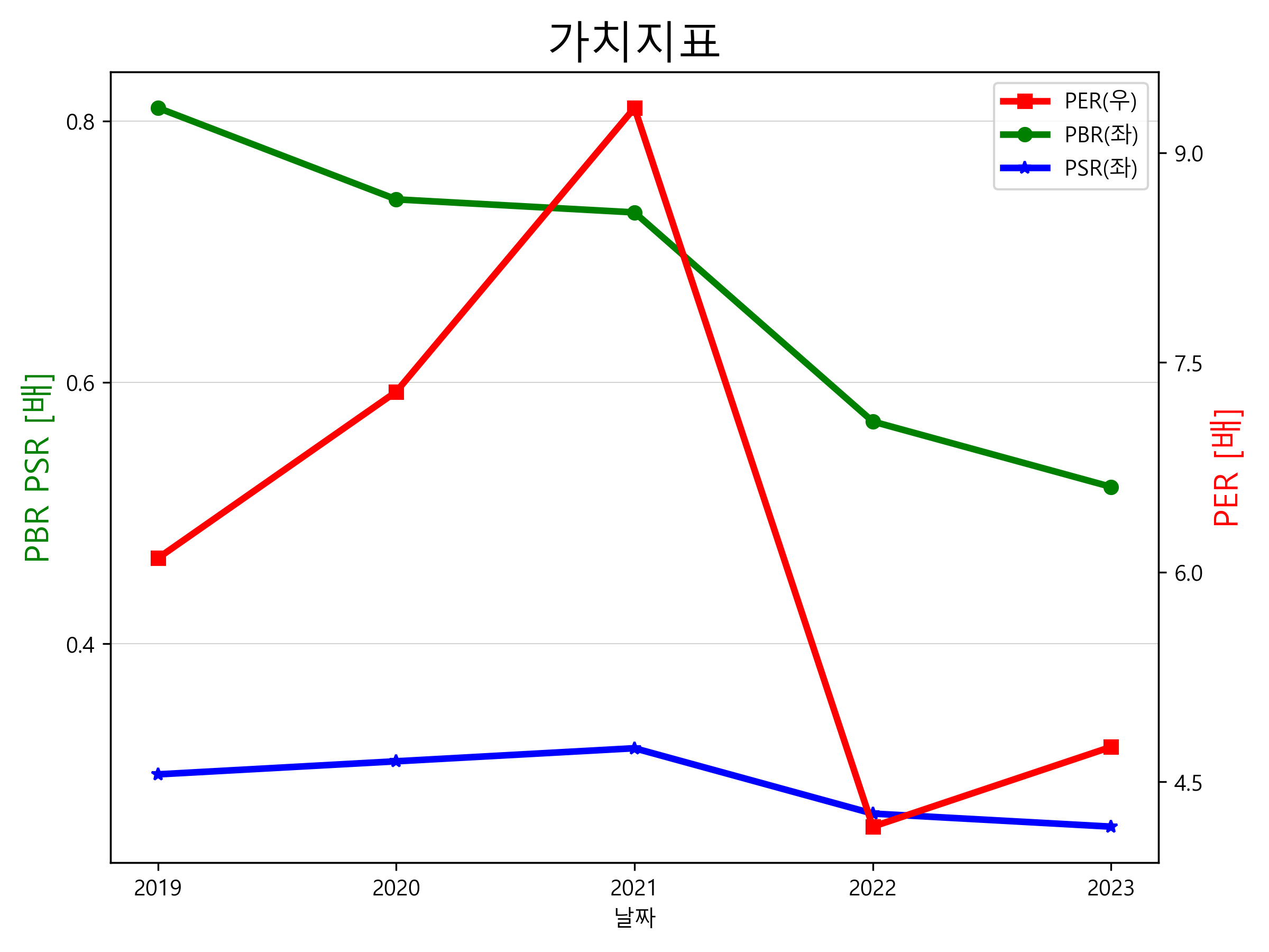 - PER : 6.19배, 동일업종 PER : 12.23배