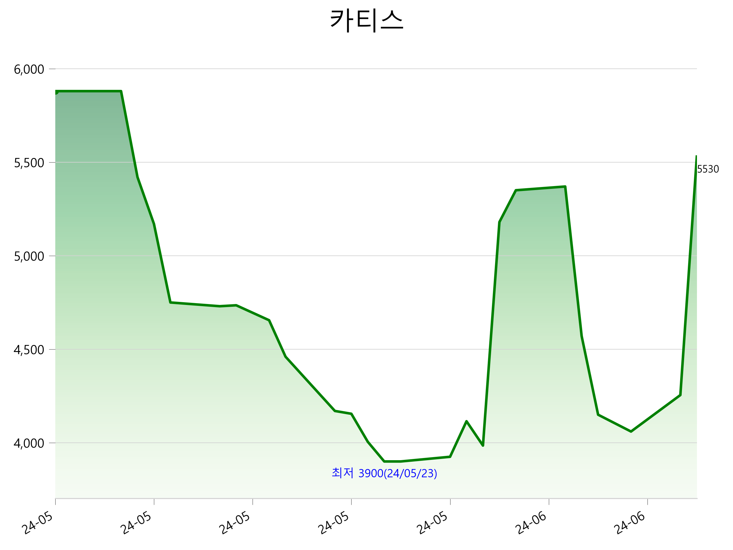 카티스(140430)의 6월 11일 주가가 급상승했습니다. 카티스에 대해 어떠한 기업이며, 주식정보 및 주가 상한가 이유에 대해서 알려드리겠습니다.