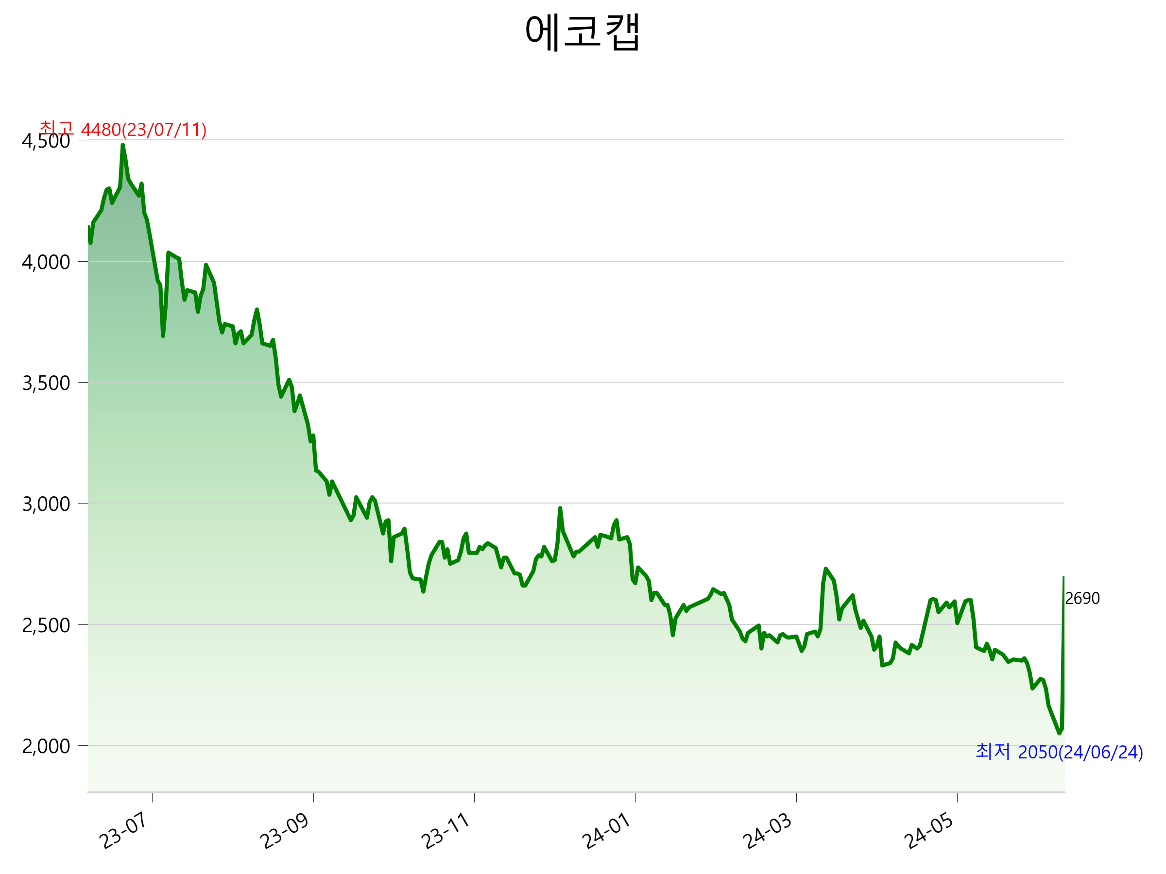 6월 26일 기준 주가는 2,690원 입니다. 아래는 최근 1년간의 주가흐름입니다.