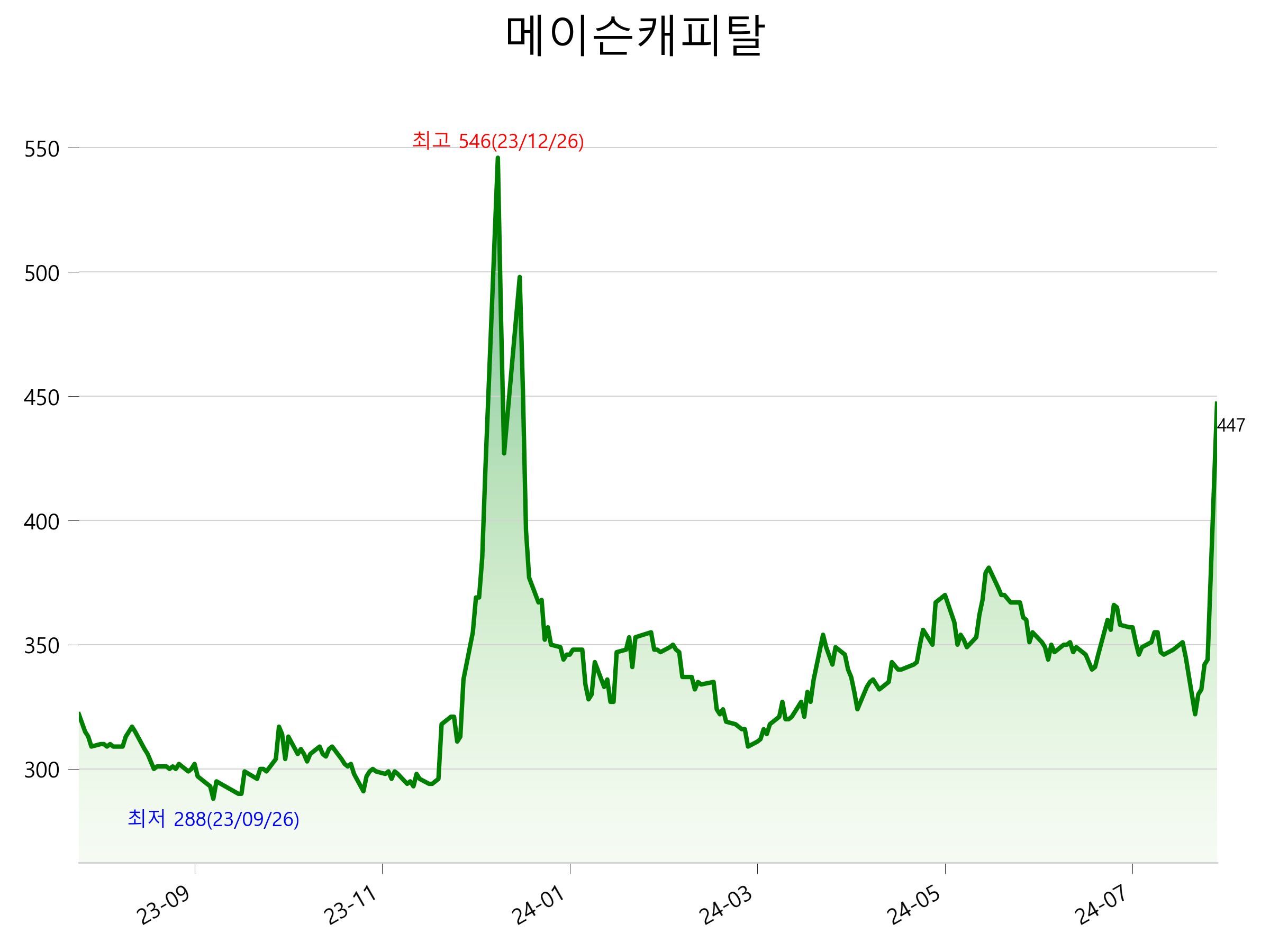 ▲메이슨캐피탈 주식 급상승(상한가) 이유