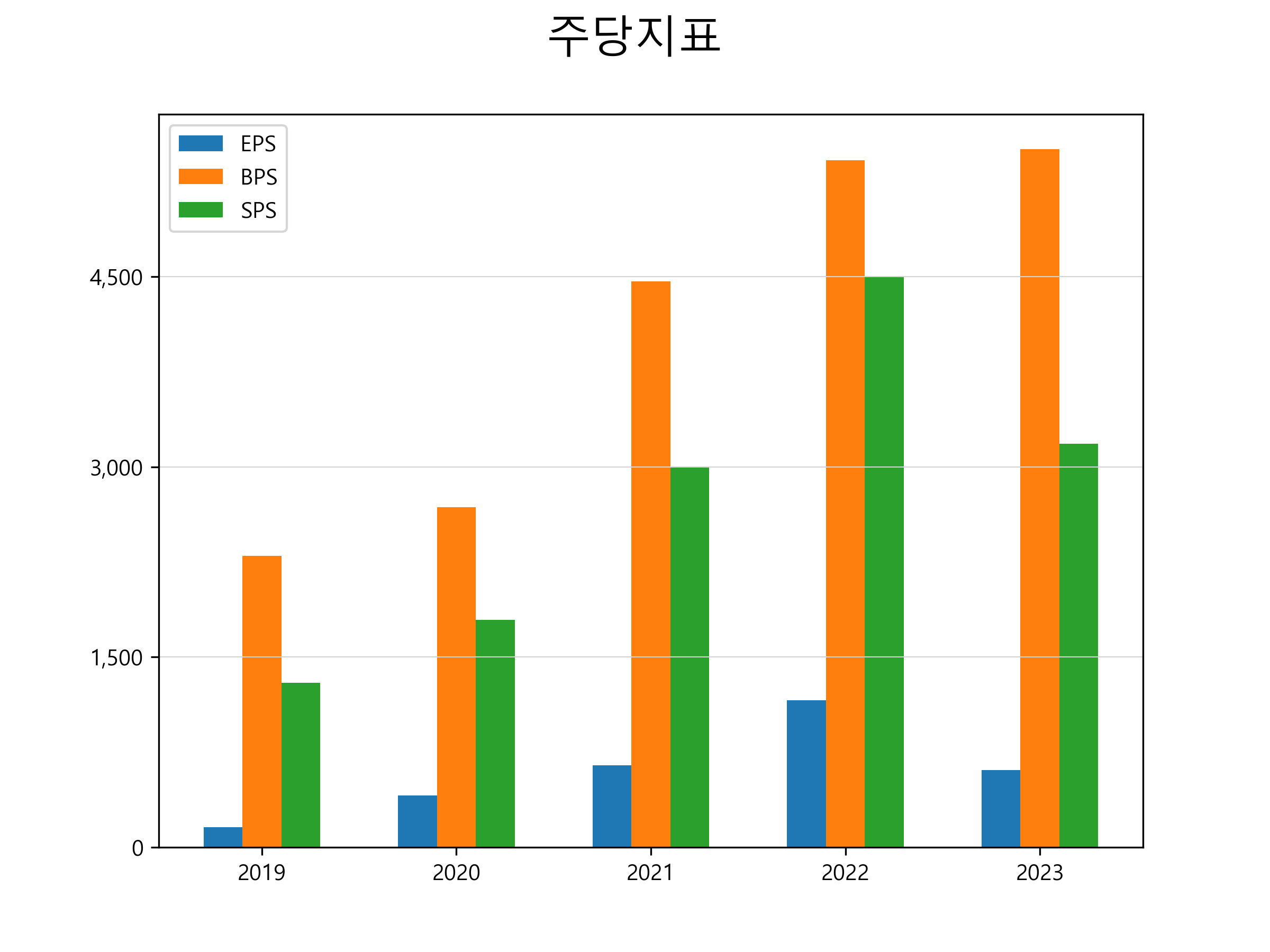 ※ EPS 주당 순이익, BPS 주당 순자산, CPS 주당 현금흐름, SPS 주당 매출액, PER 주가수익비율, PBR 주가순자산비율, PCR :주가현금비율, PSR 주가매출비율, DPS 주당배당금