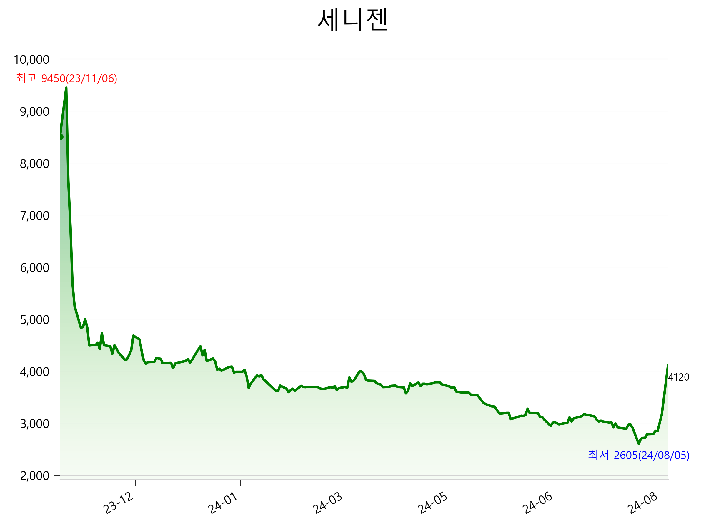 세니젠(188260)의 8월 19일 주가가 급상승했습니다. 세니젠에 대해 어떠한 기업이며, 주식정보 및 주가 상한가 이유에 대해서 알려드리겠습니다.