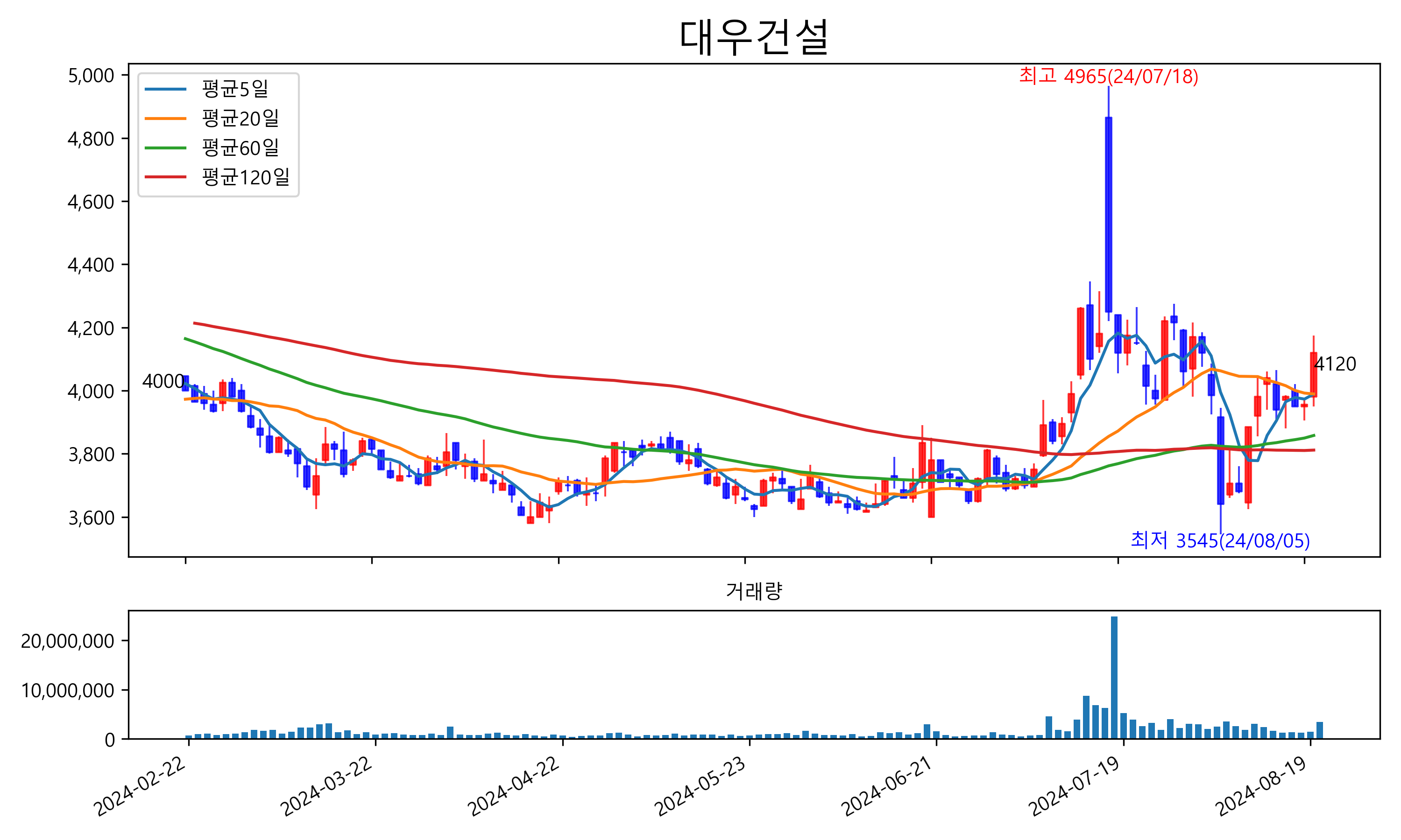 최근 6개월간 캔들차트 및 이동평균선입니다.