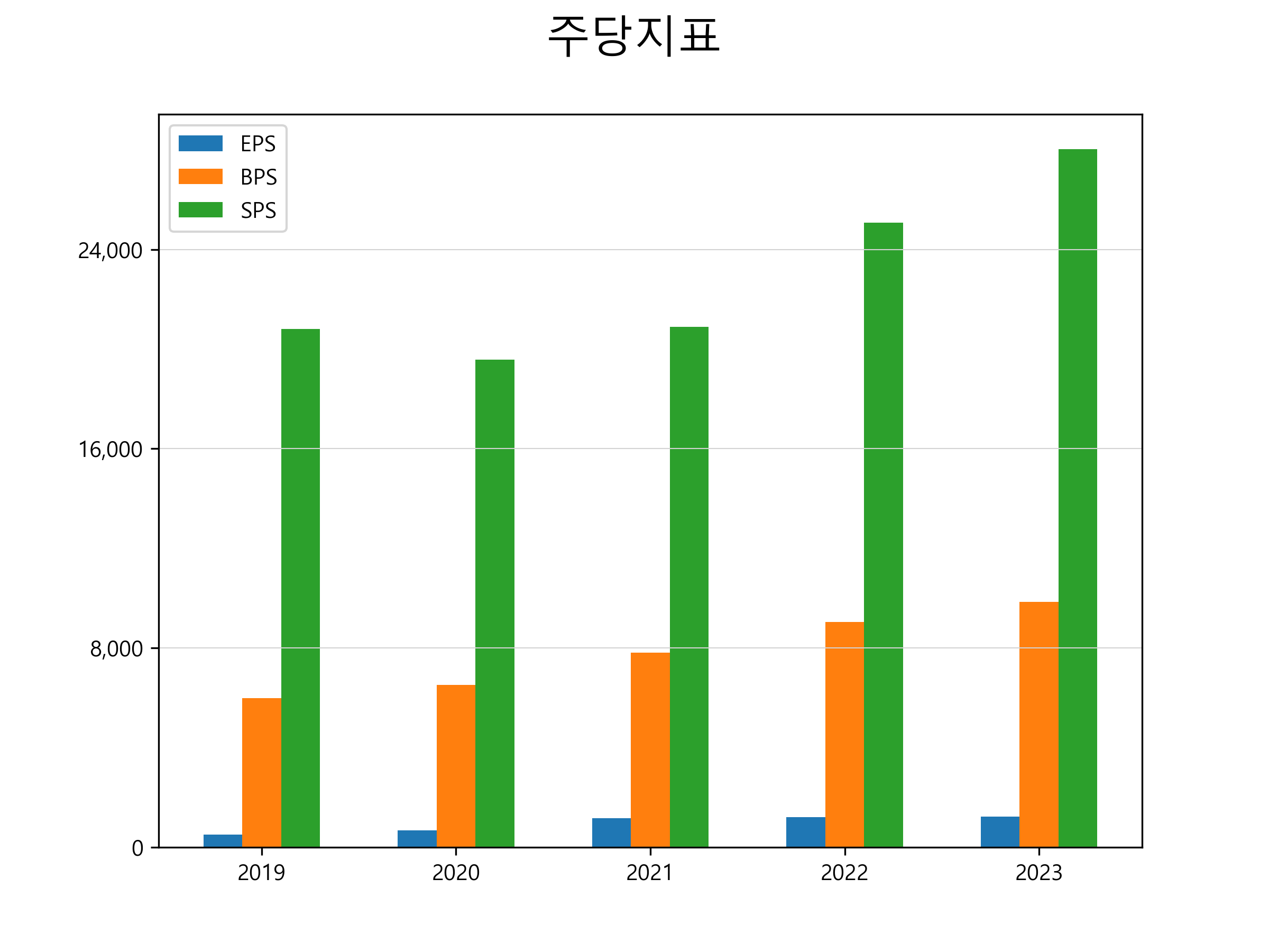 ※ EPS 주당 순이익, BPS 주당 순자산, CPS 주당 현금흐름, SPS 주당 매출액, PER 주가수익비율, PBR 주가순자산비율, PCR :주가현금비율, PSR 주가매출비율, DPS 주당배당금
