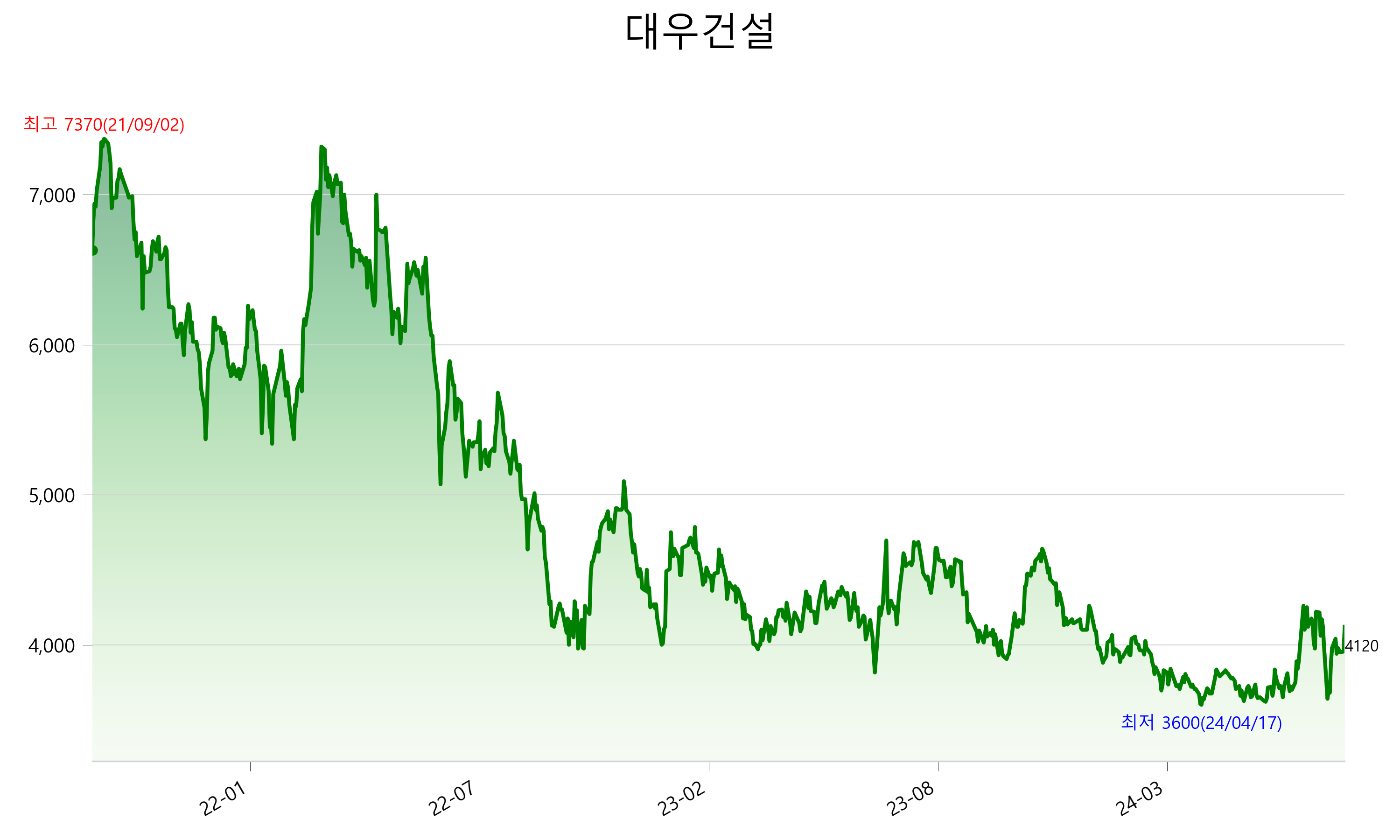 8월 20일 기준 주가는 4,120원 입니다. 아래는 최근 3년간의 주가흐름입니다.