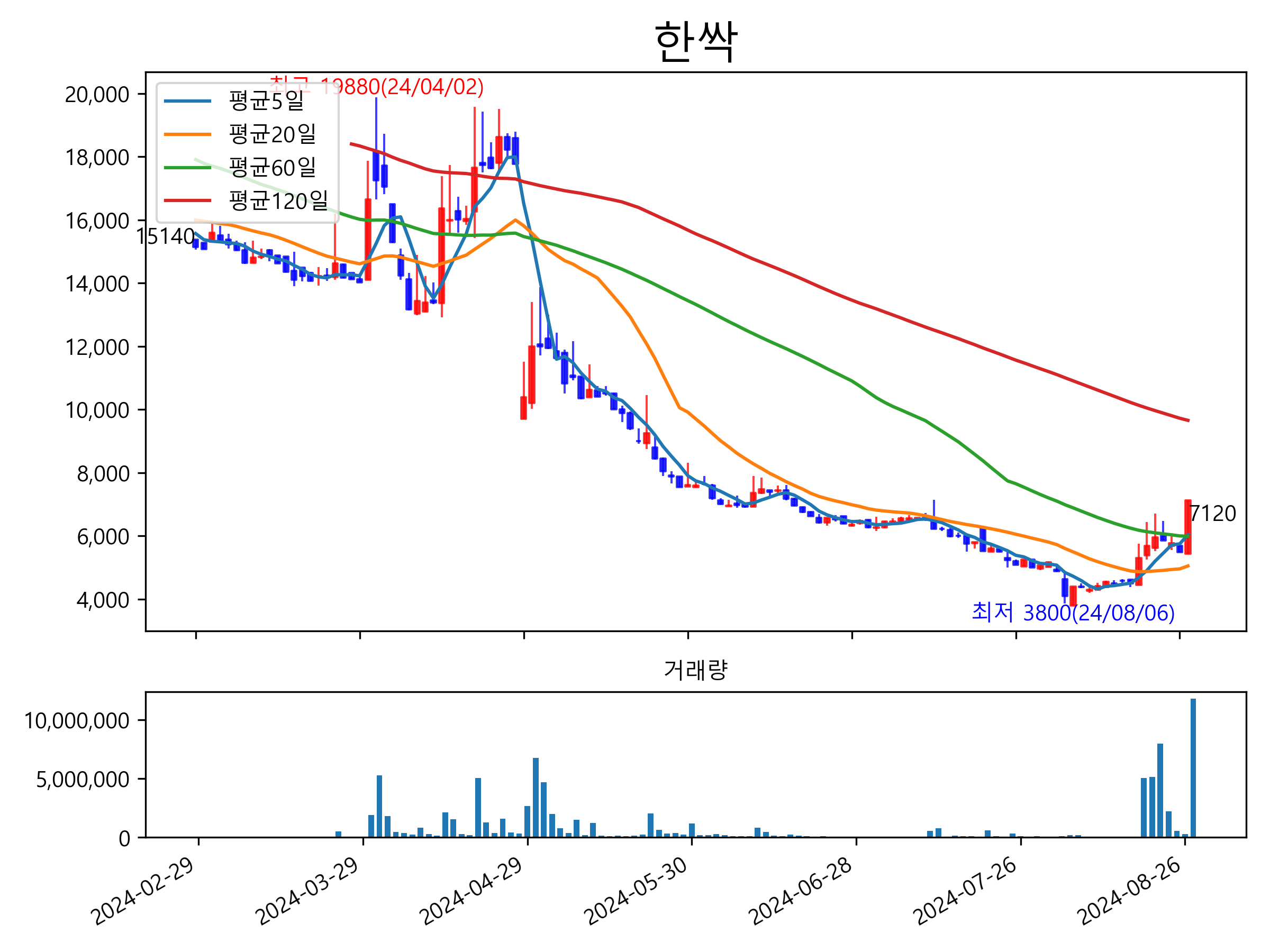 8월 27일 기준 주가는 7,120원 입니다. 아래는 최근 1년간의 주가흐름입니다.
