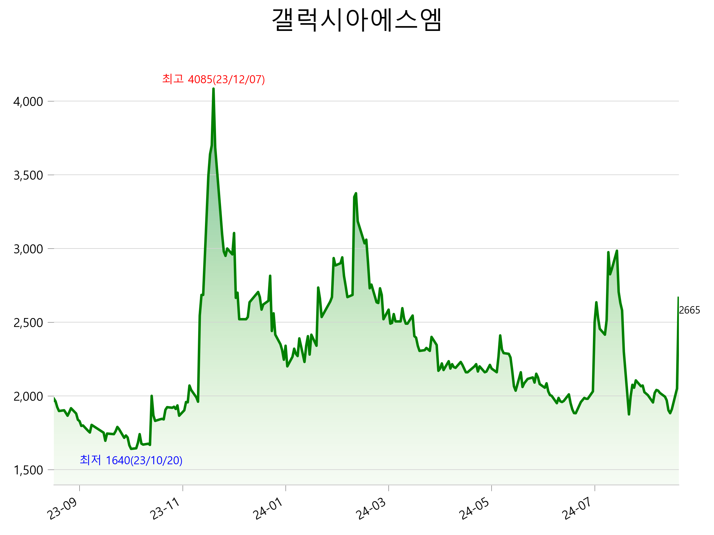 9월 3일 기준 주가는 2,665원 입니다. 아래는 최근 1년간의 주가흐름입니다.