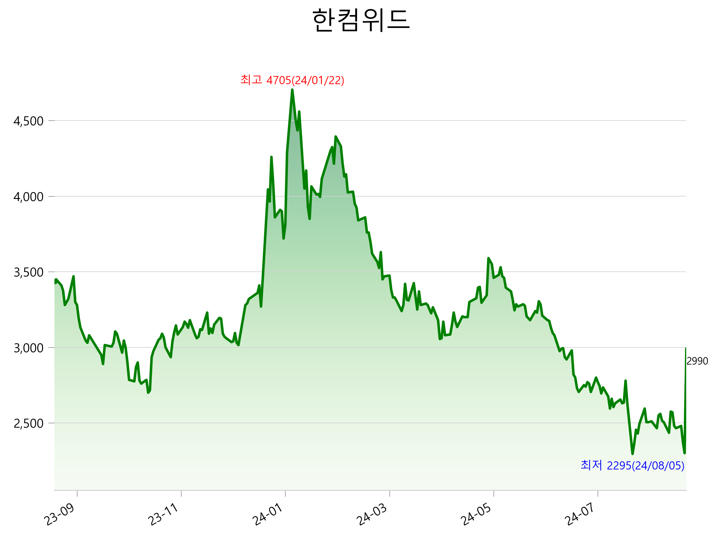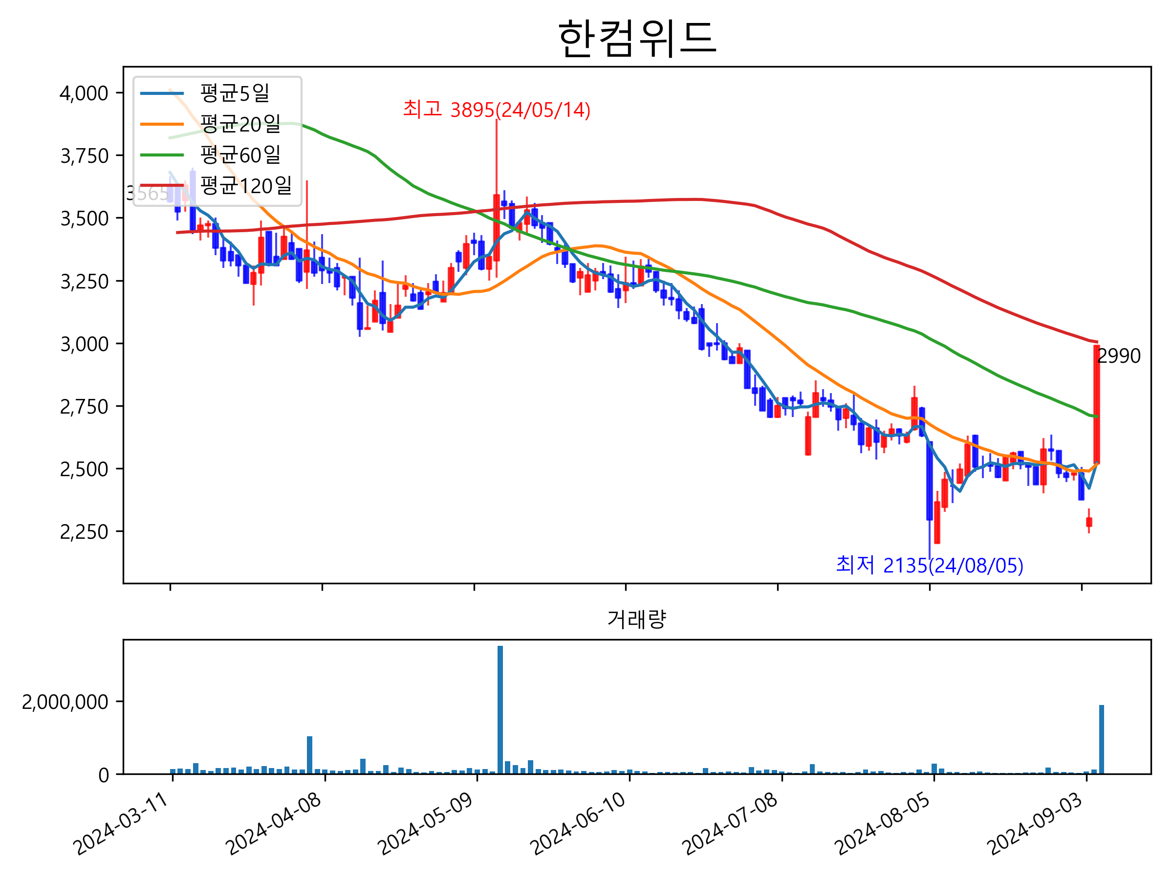 한컴위드(054920)의 9월 5일 주가가 급상승했습니다. 한컴위드에 대해 어떠한 기업이며, 주식정보 및 주가 상한가 이유에 대해서 알려드리겠습니다.