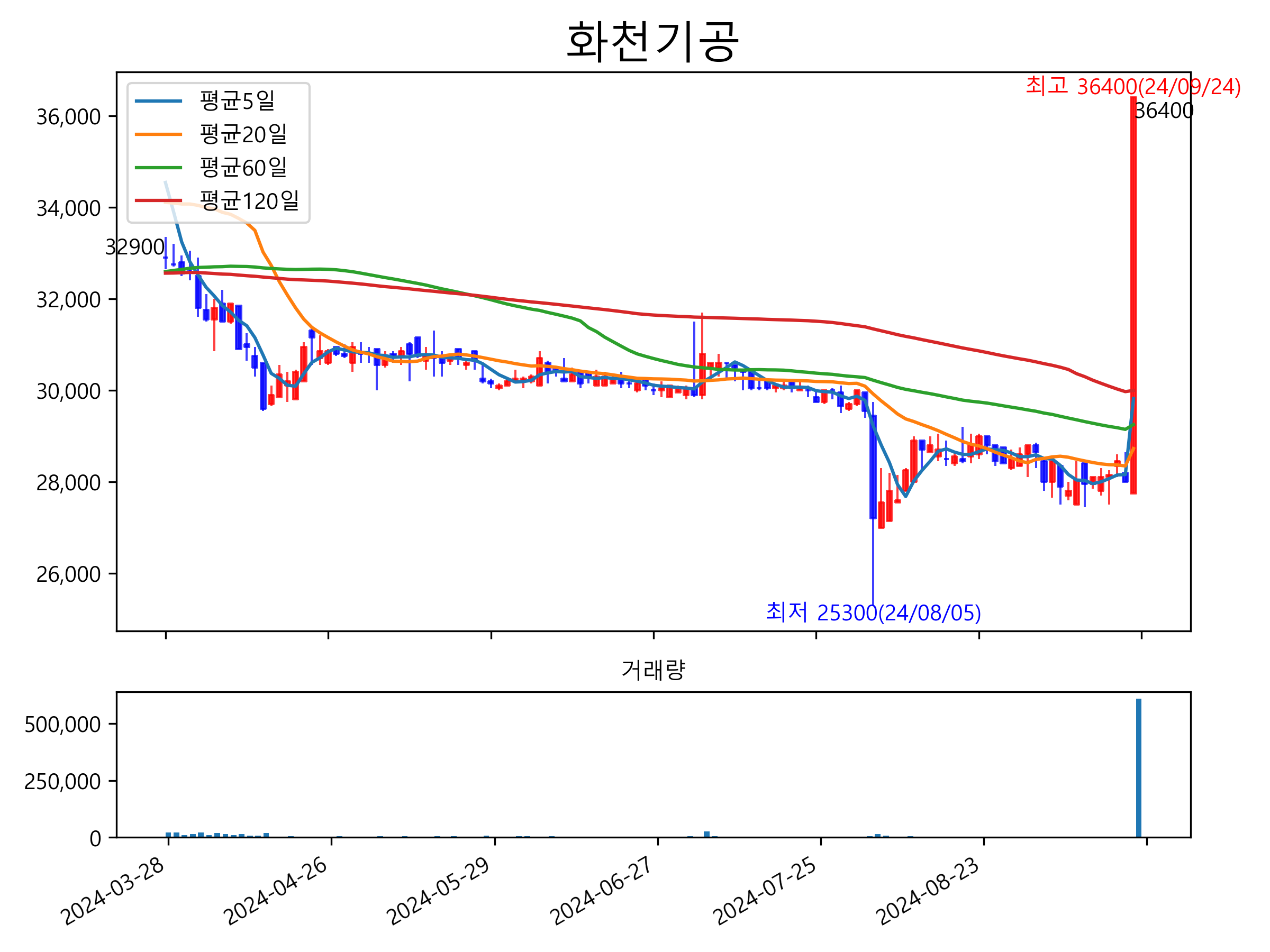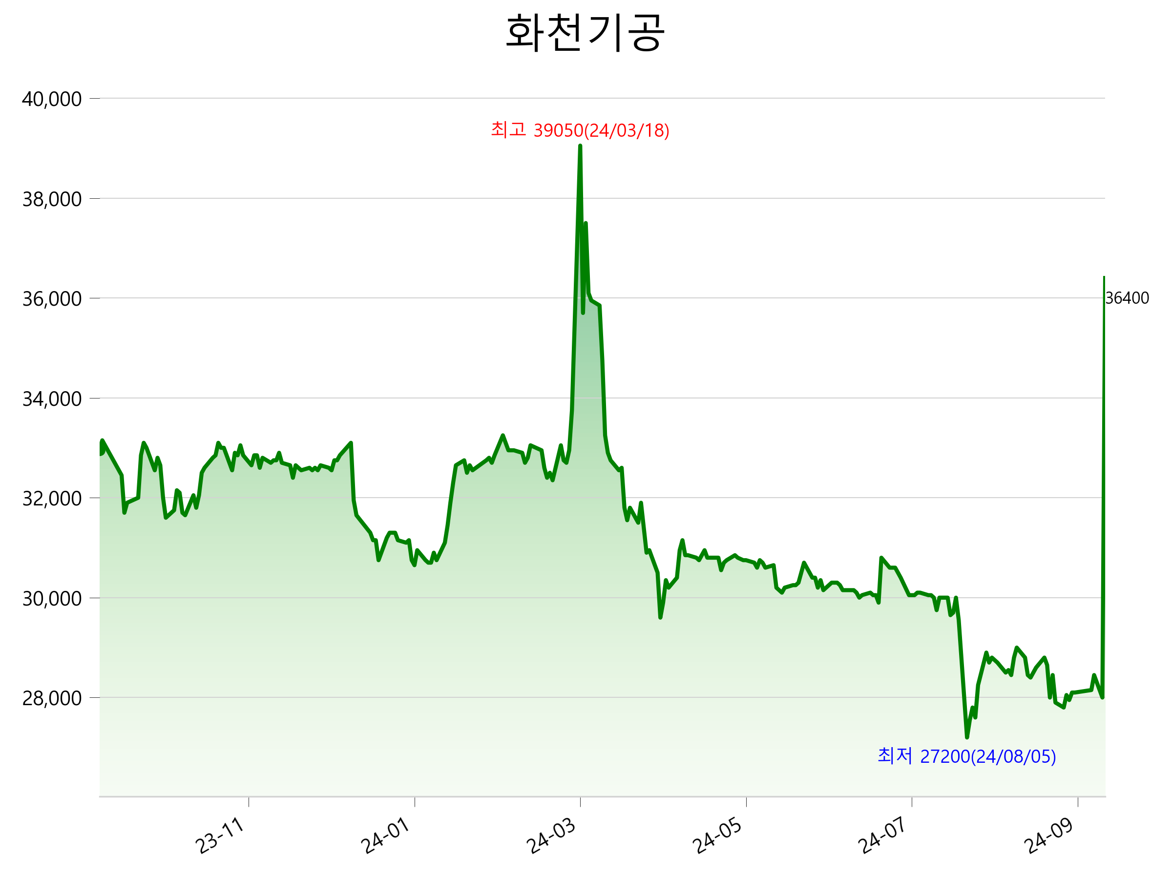9월 24일 기준 주가는 36,400원 입니다. 아래는