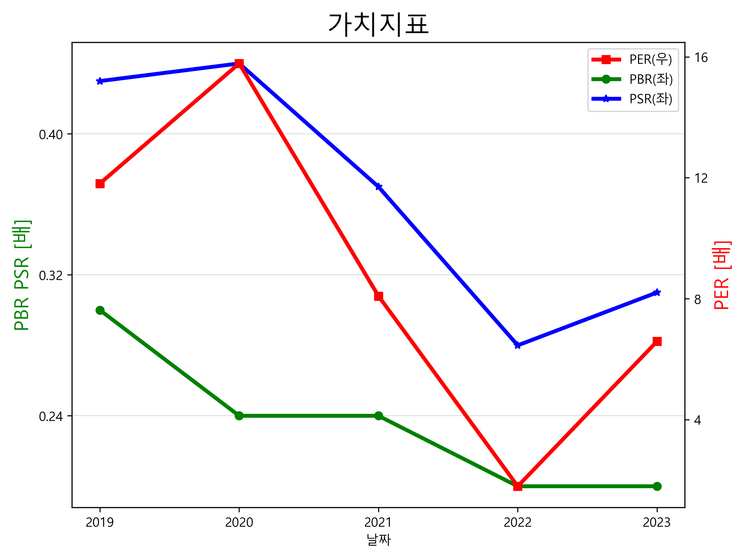 - PER : 12.08배, 동일업종 PER : 22.56배