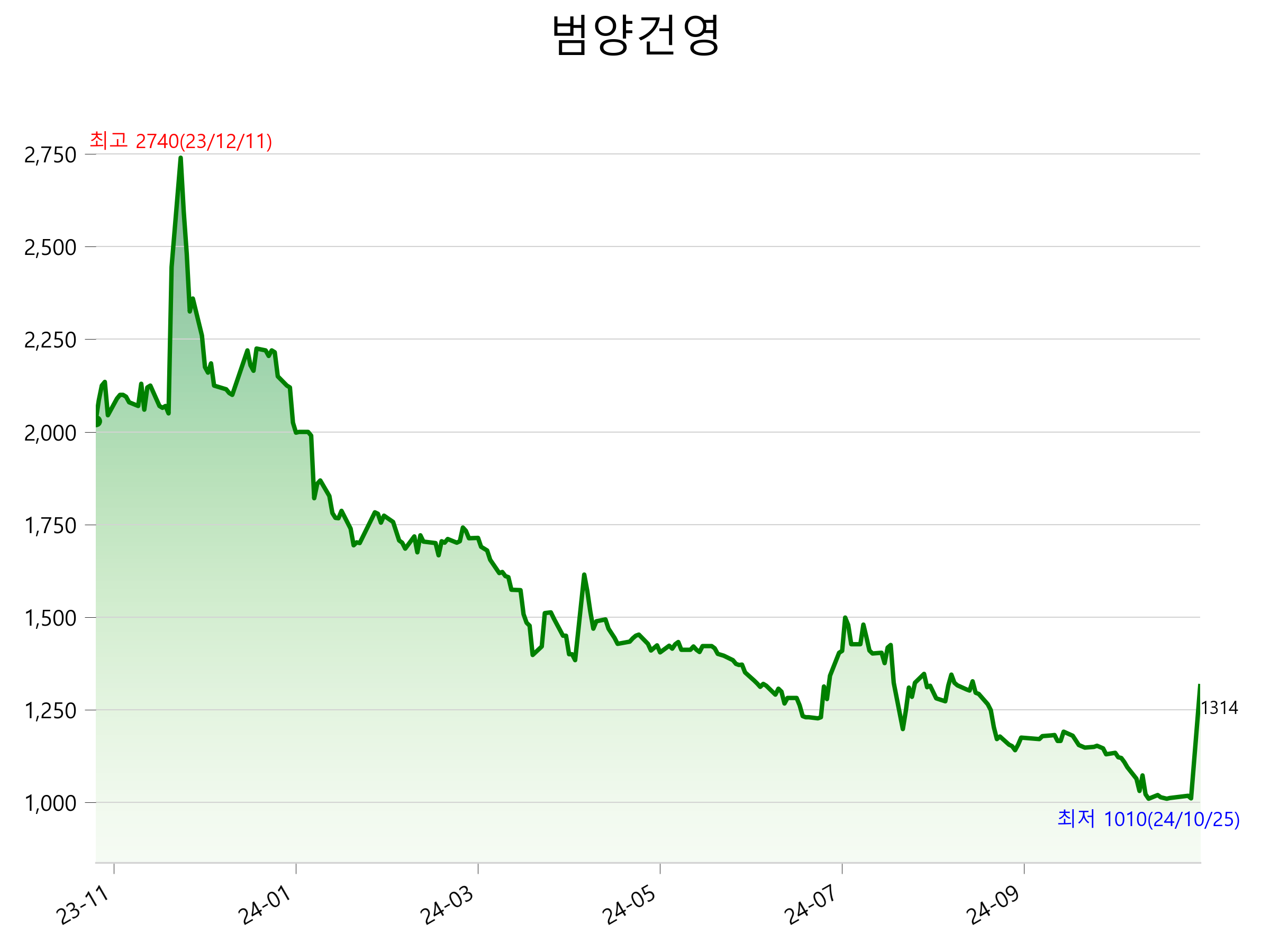 11월 11일 기준 주가는 1,314원 입니다. 아래는 최근 1년간의 주가흐름입니다.