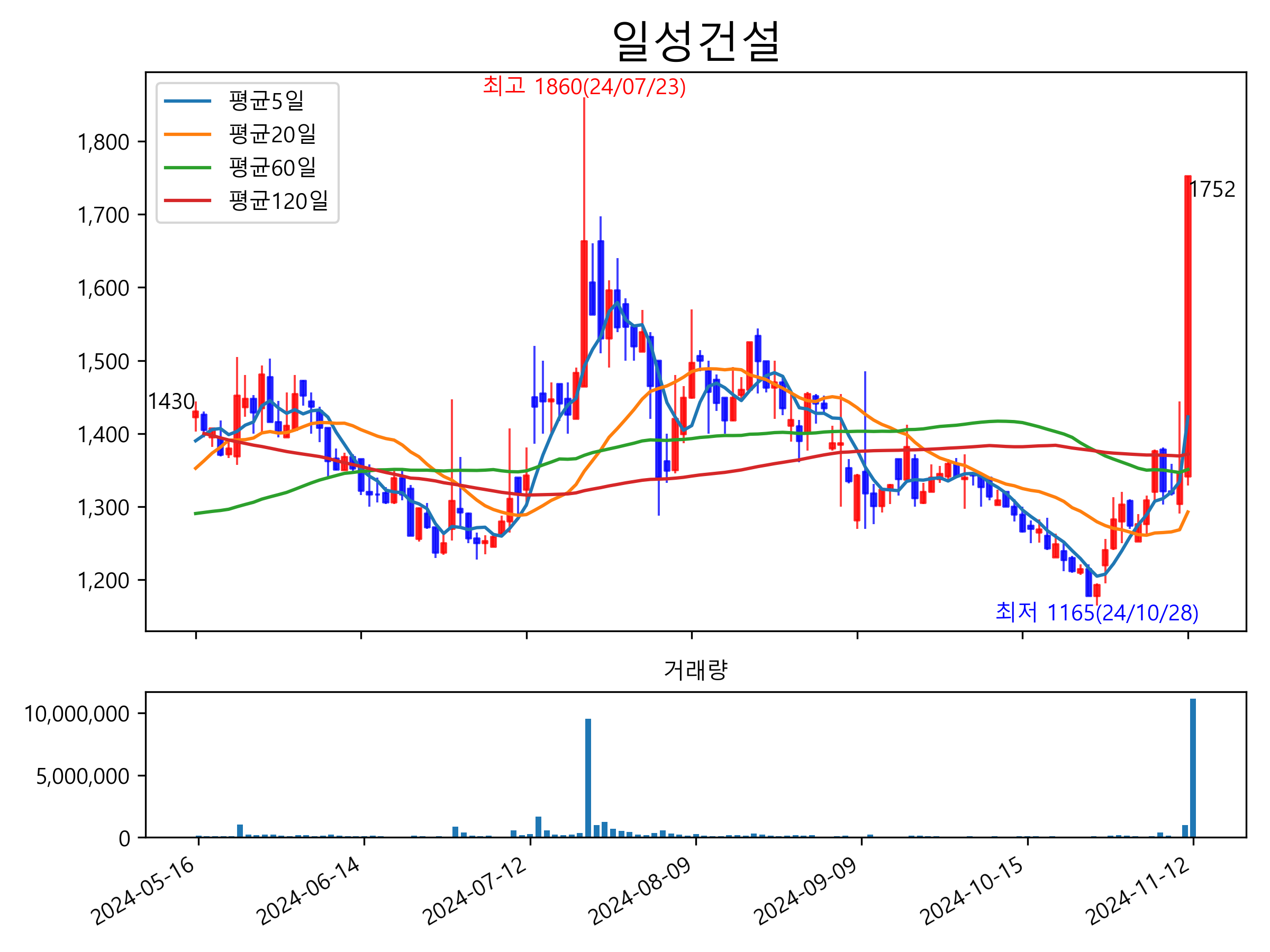 일성건설(013360)의 11월 12일 주가가 급상승했습니다. 일성건설에 대해 어떠한 기업이며, 주식정보 및 주가 상한가 이유에 대해서 알려드리겠습니다.