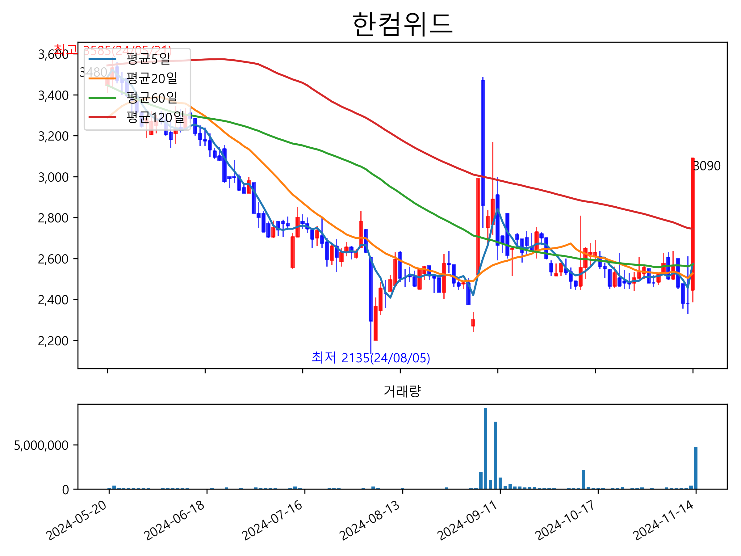한컴위드(054920)의 11월 14일 주가가 급상승했습니다. 한컴위드에 대해 어떠한 기업이며, 주식정보 및 주가 상한가 이유에 대해서 알려드리겠습니다.