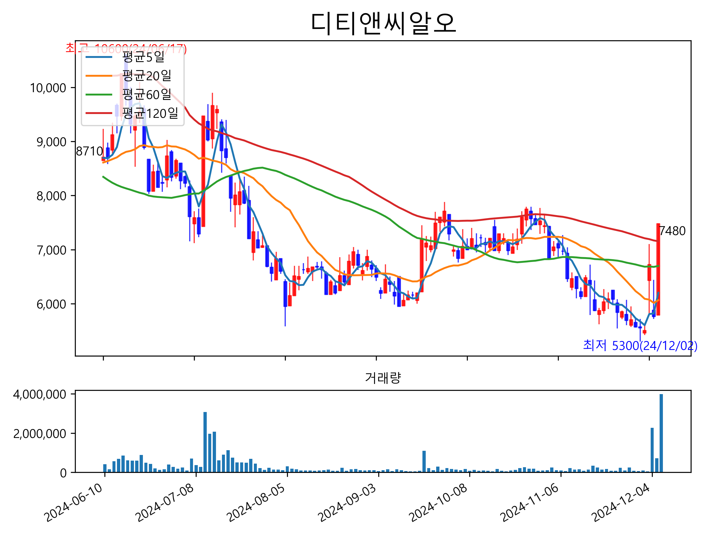 디티앤씨알오(383930)의 12월 6일 주가가 급상승했습니다. 디티앤씨알오에 대해 어떠한 기업이며, 주식정보 및 주가 상한가 이유에 대해서 알려드리겠습니다.