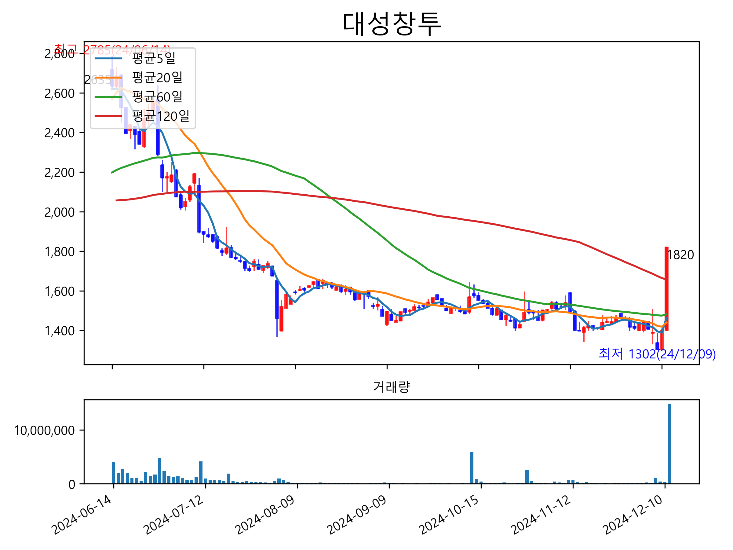 대성창투(027830)의 12월 11일 주가가 급상승했습니다. 대성창투에 대해 어떠한 기업이며, 주식정보 및 주가 상한가 이유에 대해서 알려드리겠습니다.