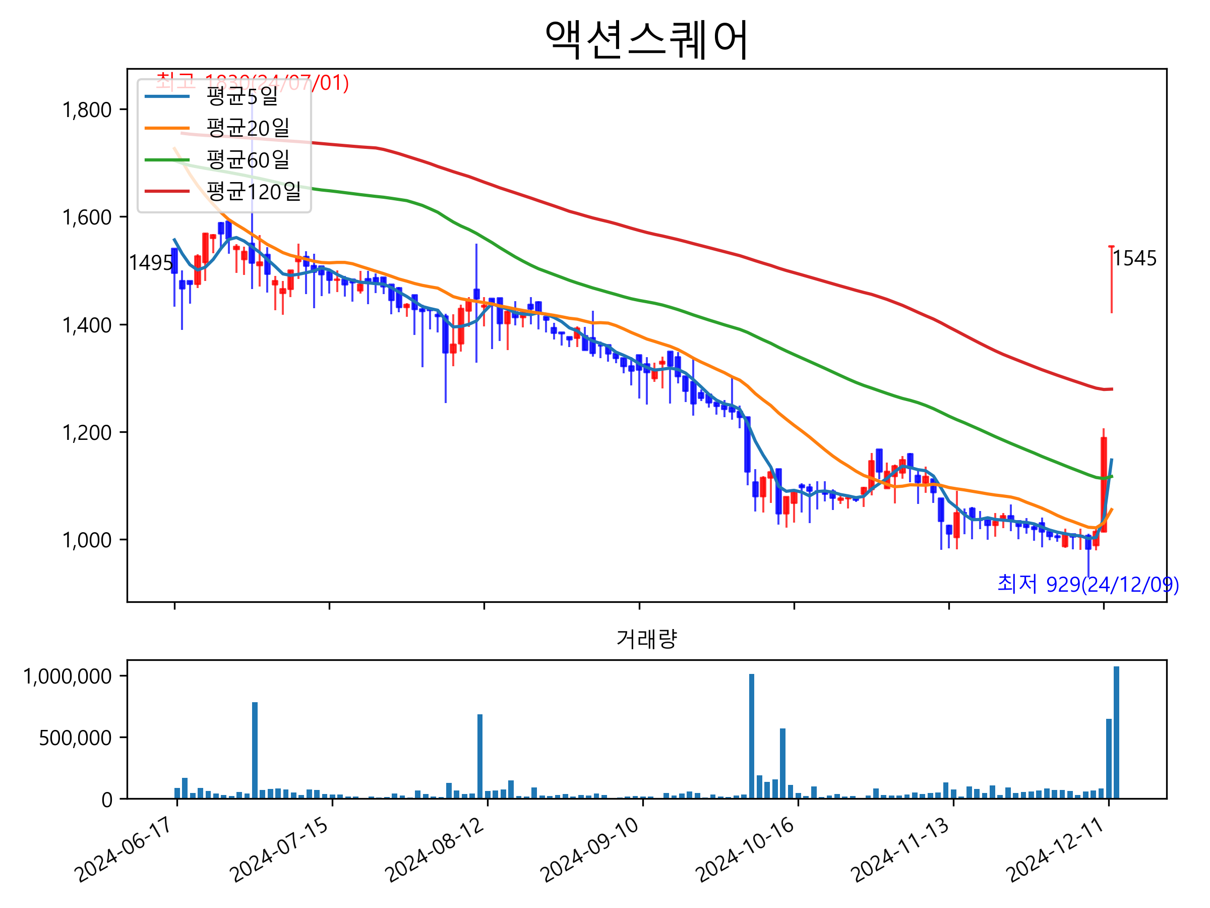 액션스퀘어(205500)의 12월 12일 주가가 급상승했습니다. 액션스퀘어에 대해 어떠한 기업이며, 주식정보 및 주가 상한가 이유에 대해서 알려드리겠습니다.