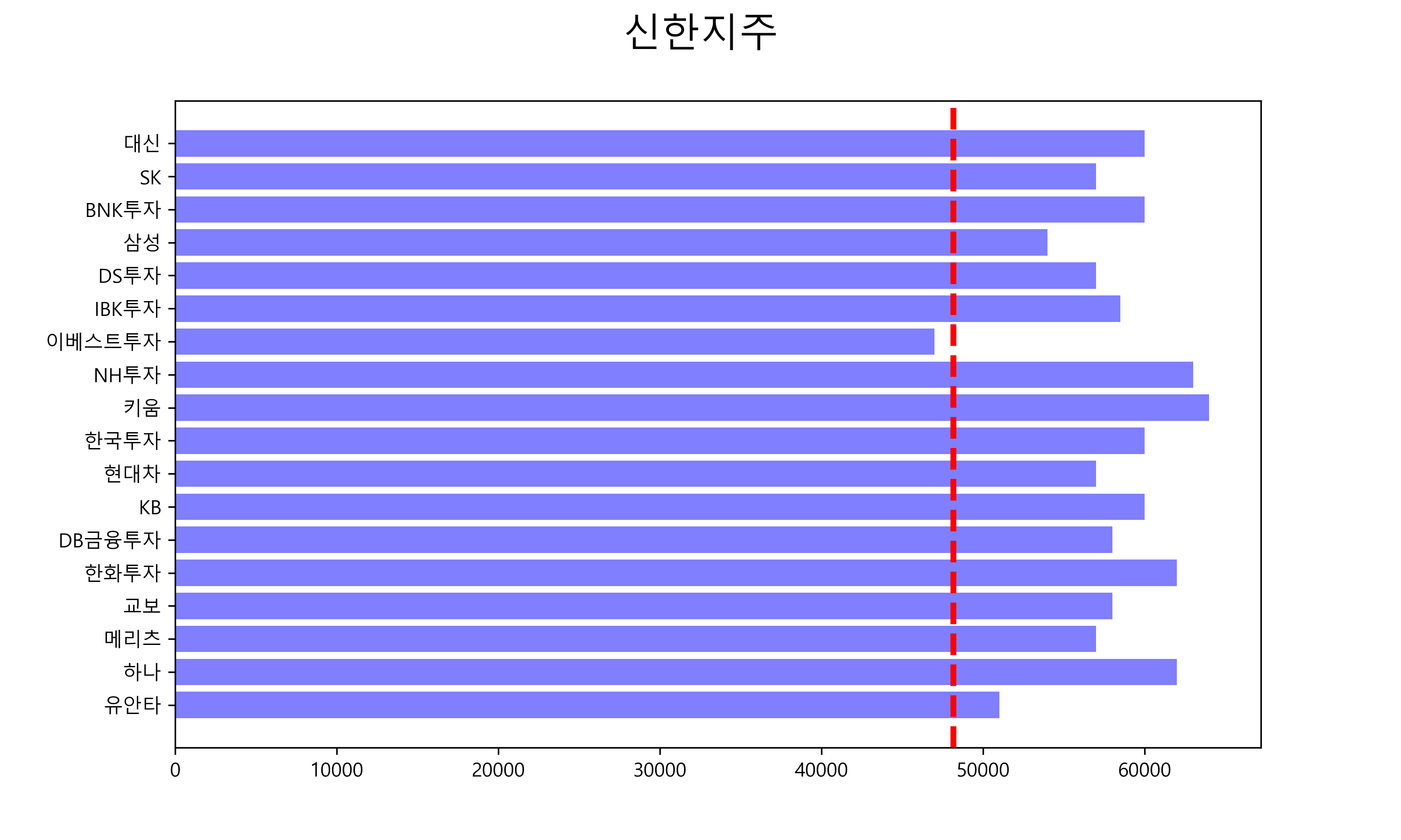현재 주가보다 상승할 것이라고 예측한 증권사은 17곳이며 하락할 것이라고 예측한 증권사는 1곳 입니다. 신한지주의 5월 16일 기준 현재 주가로 48,150원 입니다. 목표주가 평균추정치는 58,083원 으로 현재 주가 대비 20.6% 높습니다.