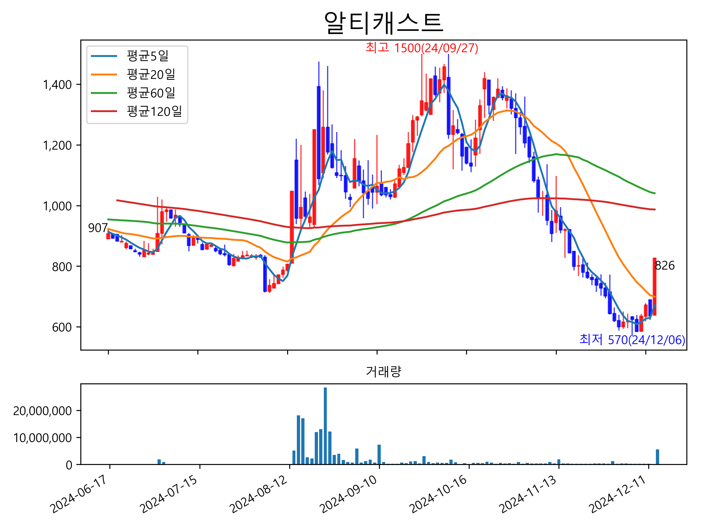 알티캐스트(085810)의 12월 13일 주가가 급상승했습니다. 알티캐스트에 대해 어떠한 기업이며, 주식정보 및 주가 상한가 이유에 대해서 알려드리겠습니다.