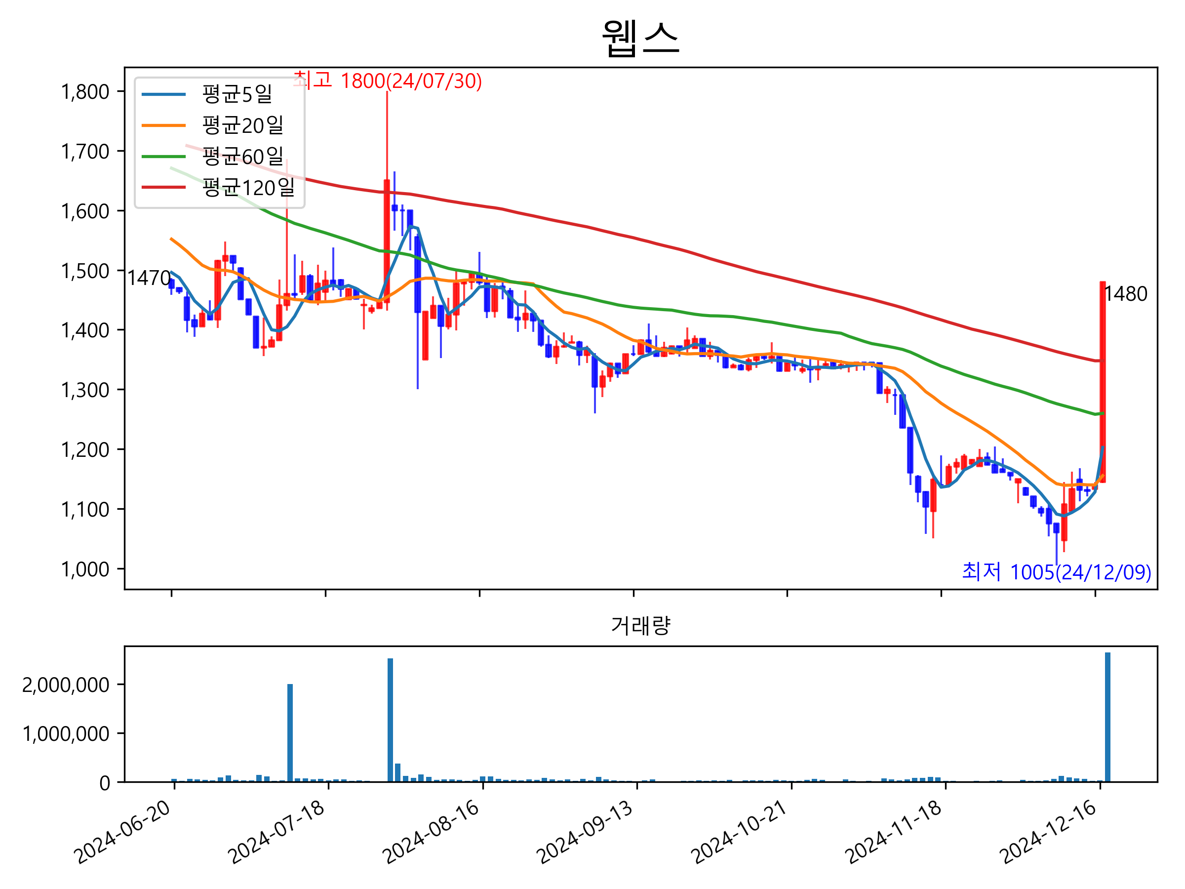 웹스(196700)의 12월 17일 주가가 급상승했습니다. 웹스에 대해 어떠한 기업이며, 주식정보 및 주가 상한가 이유에 대해서 알려드리겠습니다.