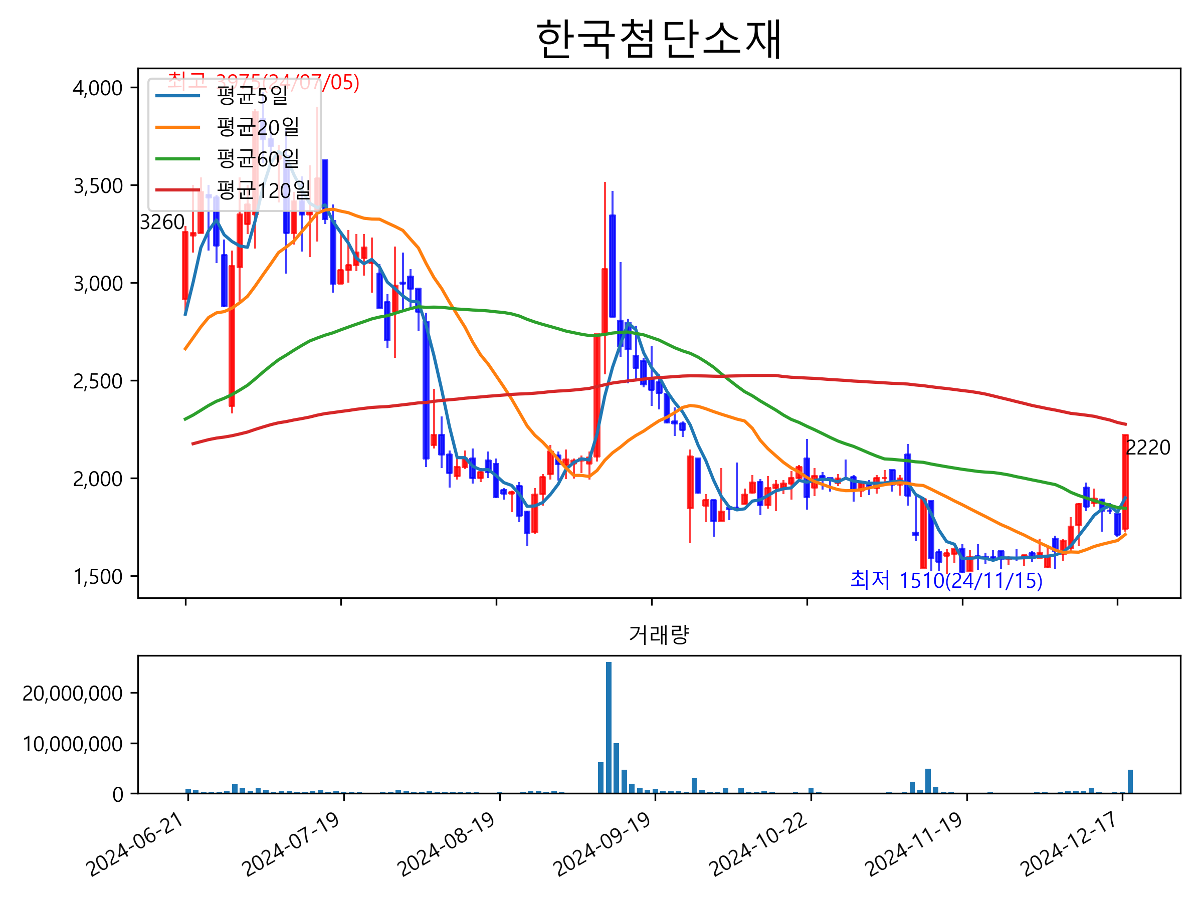 한국첨단소재(062970)의 12월 18일 주가가 급상승했습니다. 한국첨단소재에 대해 어떠한 기업이며, 주식정보 및 주가 상한가 이유에 대해서 알려드리겠습니다.