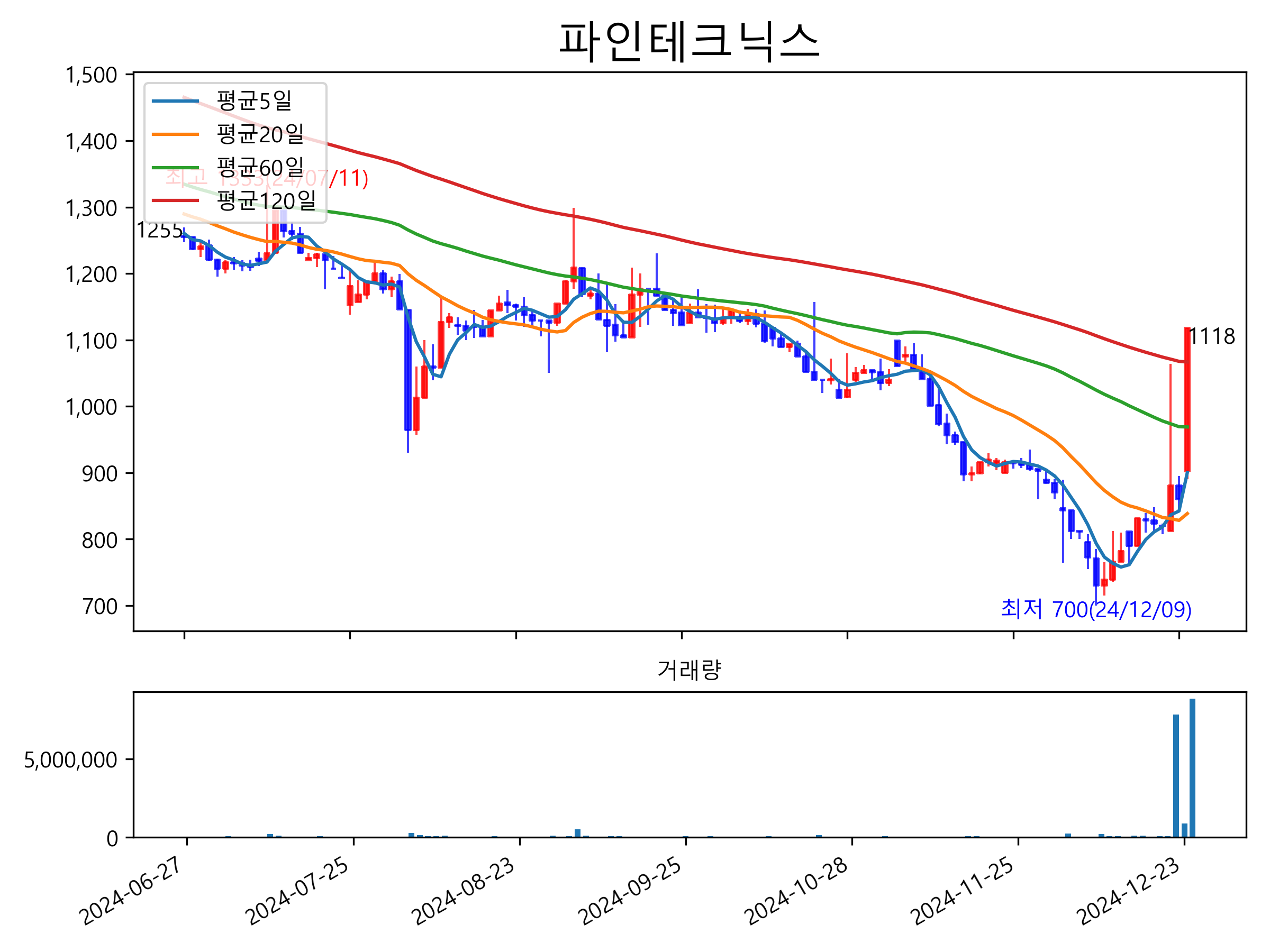 파인테크닉스(106240)의 12월 24일 주가가 급상승했습니다. 파인테크닉스에 대해 어떠한 기업이며, 주식정보 및 주가 상한가 이유에 대해서 알려드리겠습니다.