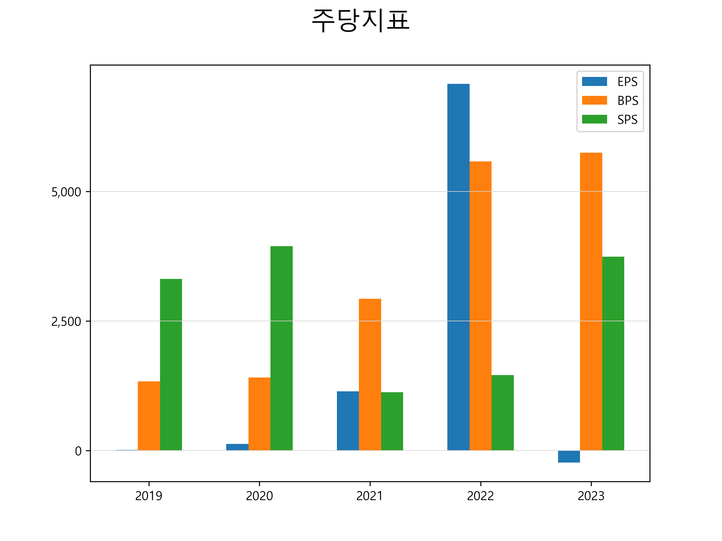 ※ EPS 주당 순이익, BPS 주당 순자산, CPS 주당 현금흐름, SPS 주당 매출액, PER 주가수익비율, PBR 주가순자산비율, PCR :주가현금비율, PSR 주가매출비율, DPS 주당배당금