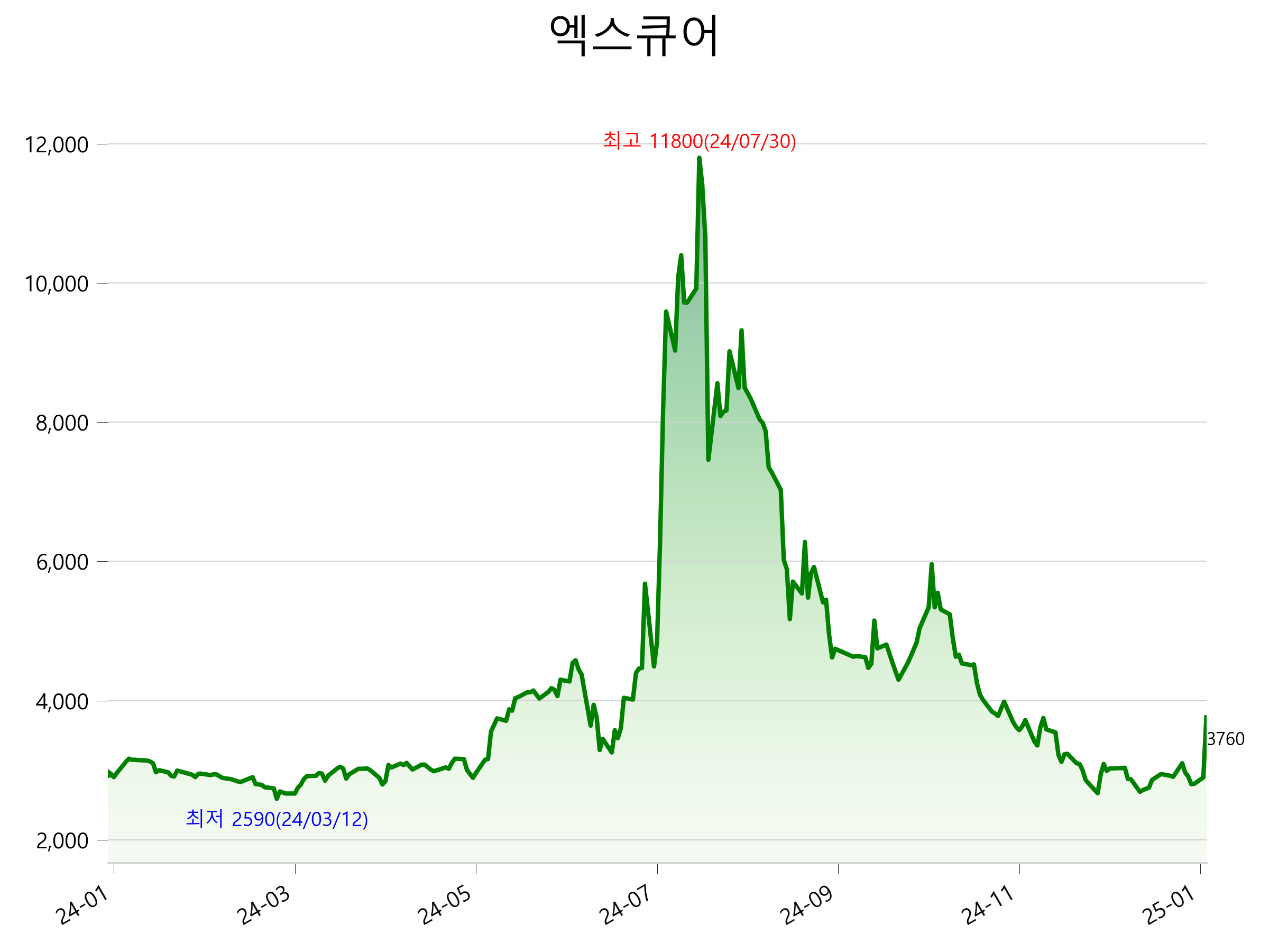 1월 14일 기준 주가는 3,760원 입니다. 아래는 최근 1년간의 주가흐름입니다.