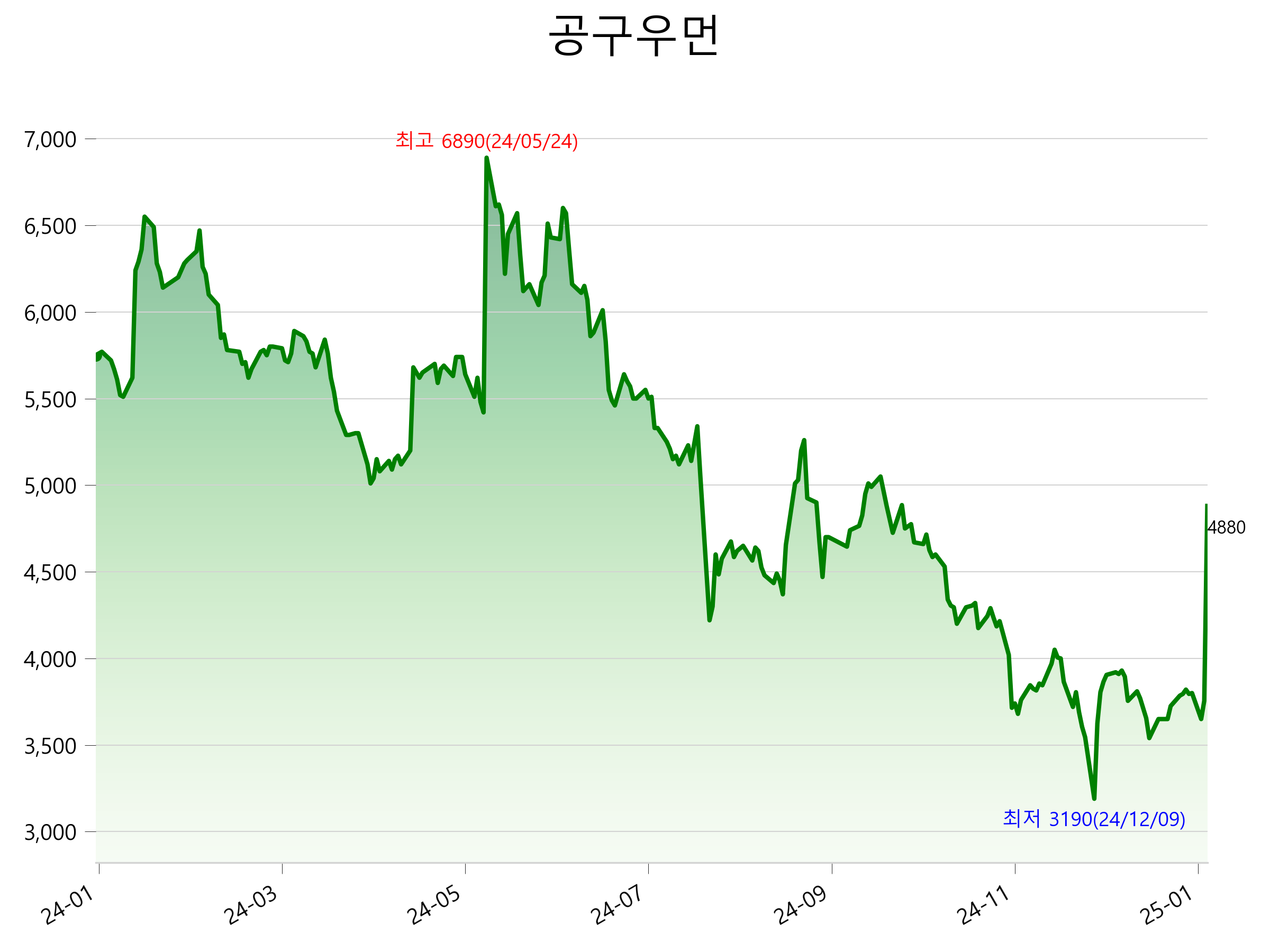 1월 15일 기준 주가는 4,880원 입니다. 아래는 최근 1년간의 주가흐름입니다.