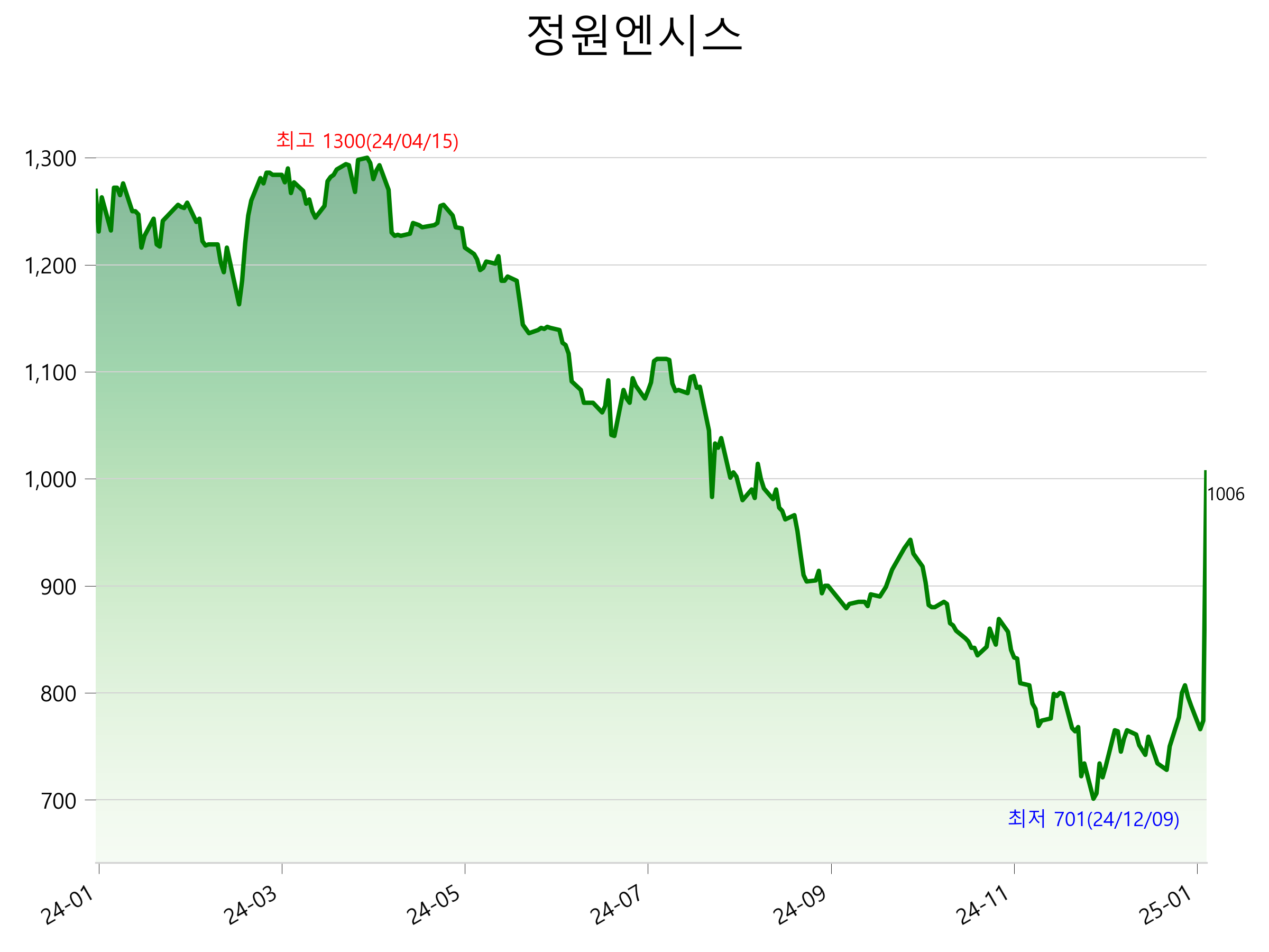 정원엔시스(045510)의 1월 15일 주가가 급상승했습니다. 정원엔시스에 대해 어떠한 기업이며, 주식정보 및 주가 상한가 이유에 대해서 알려드리겠습니다.