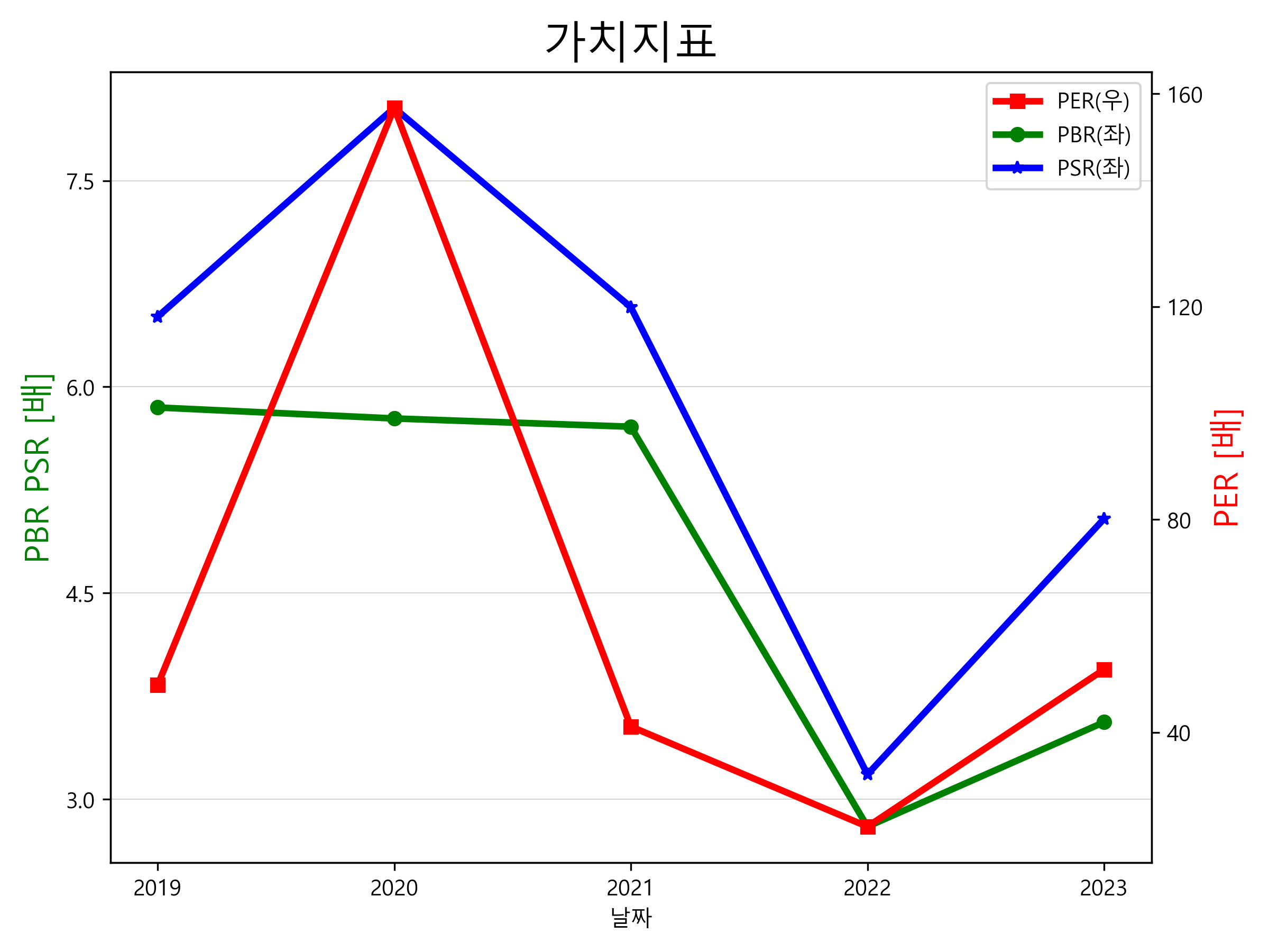 - PER : 70.64배, 동일업종 PER : 23.18배
