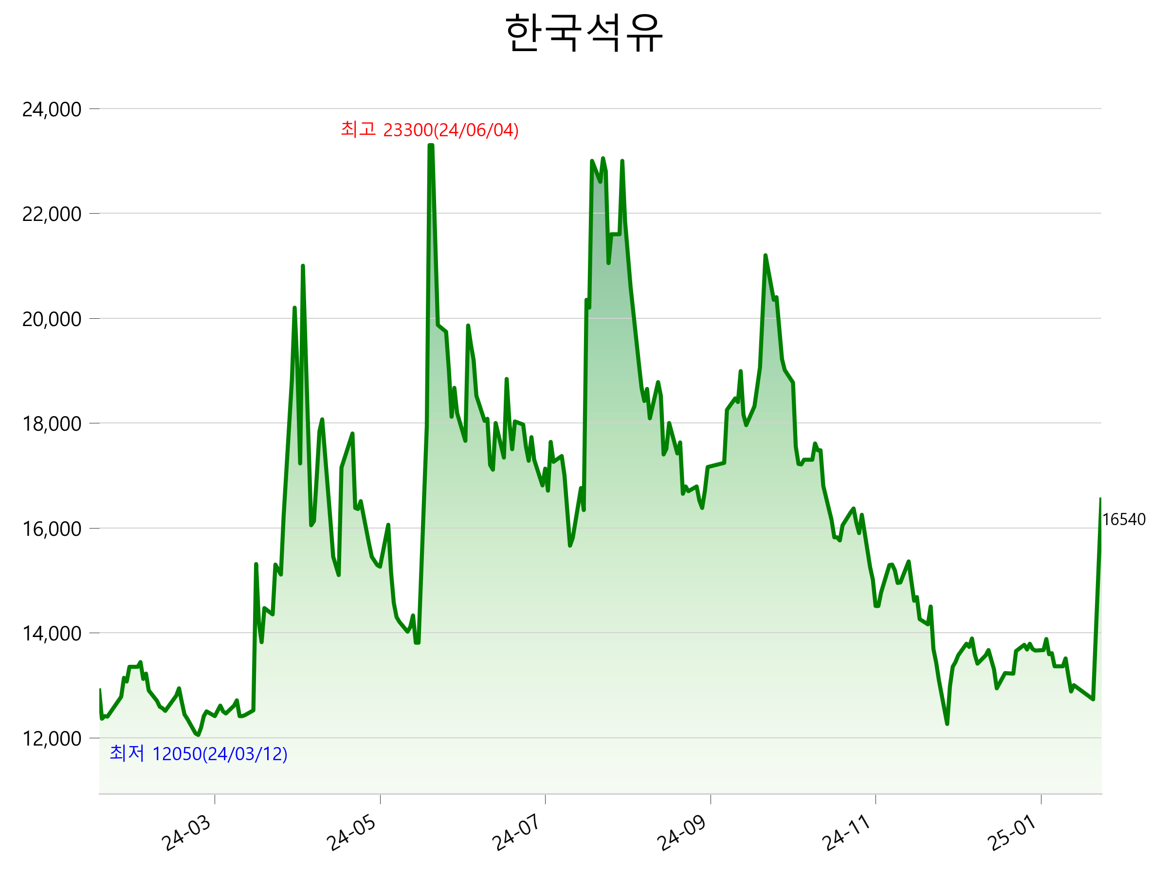 2월 3일 기준 주가는 16,540원 입니다. 아래는 최근 1년간의 주가흐름입니다.