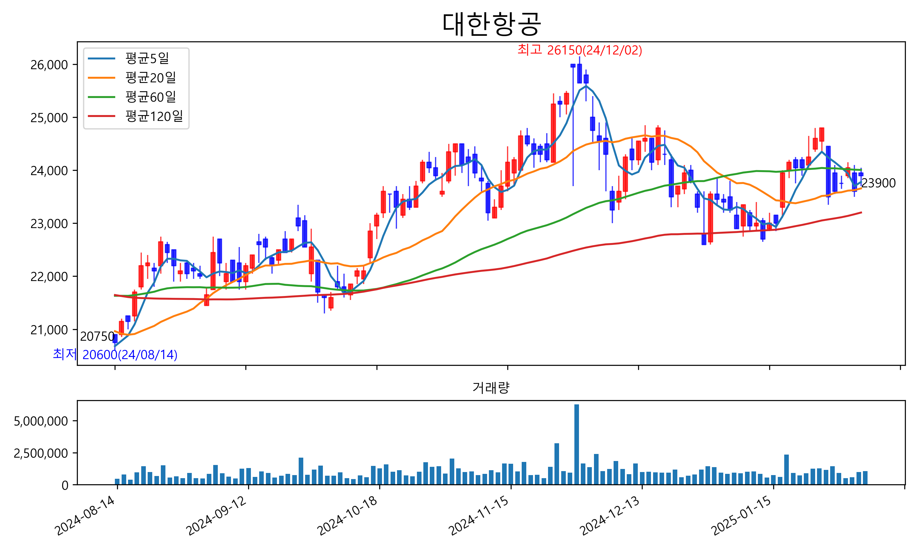 최근 6개월간 캔들차트 및 이동평균선입니다.