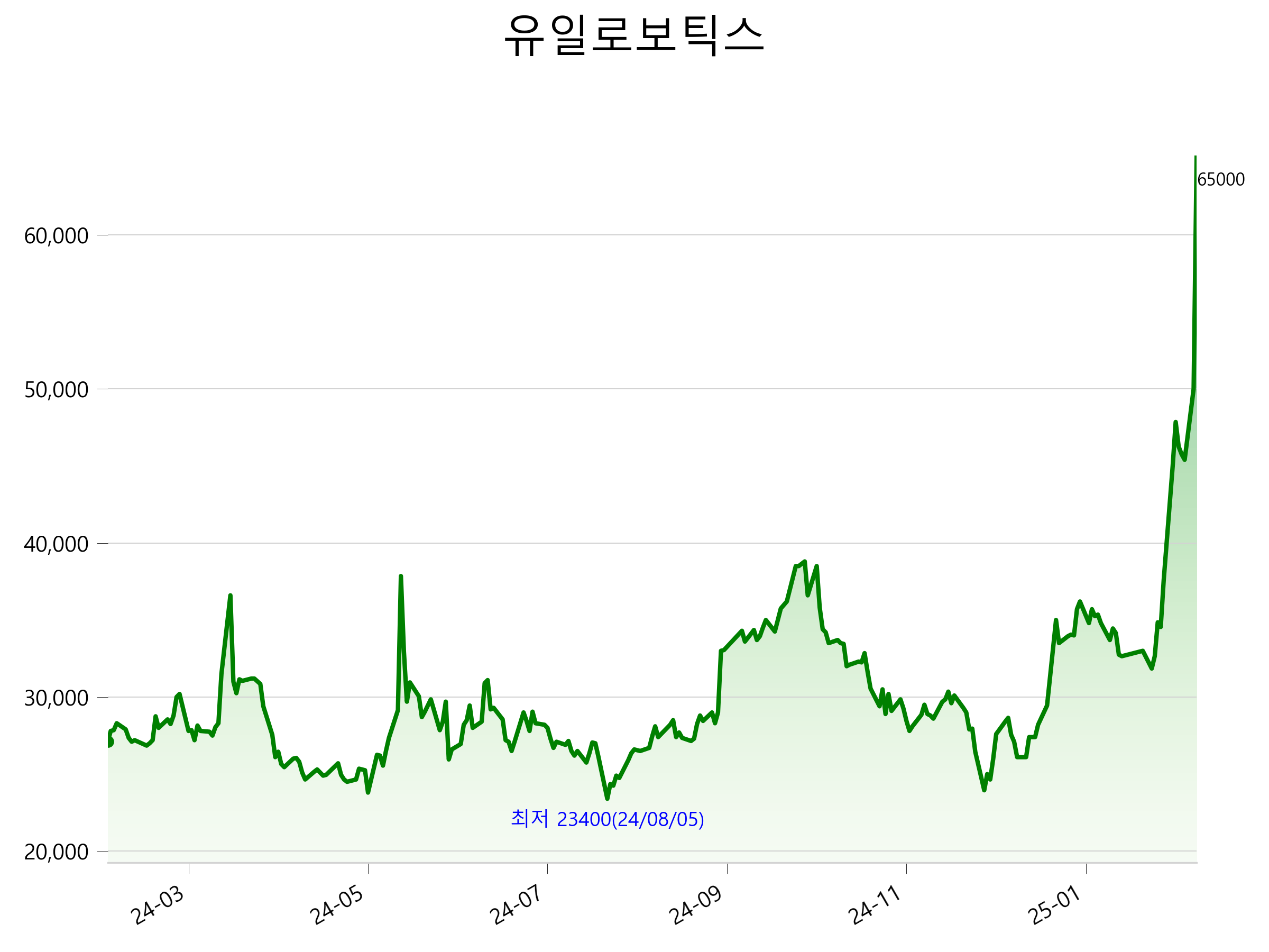 52주 최고가는 65,000원(2025-02-18), 52주 최저가는 23,400원(2024-08-05)으로 52주간 주가 상승률은 139.9% 입니다.