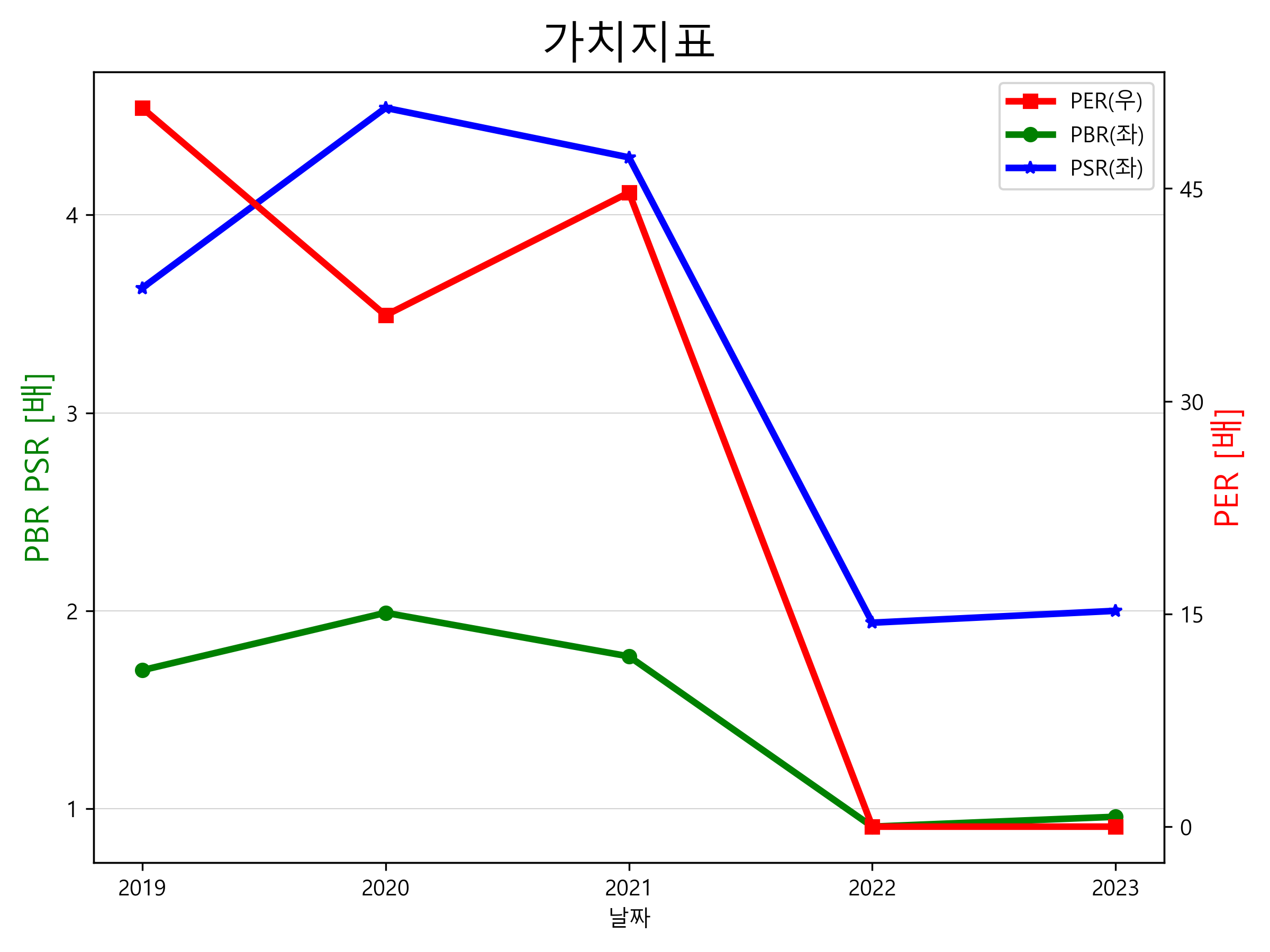 - PER : 202.41배, 동일업종 PER : 43.08배
