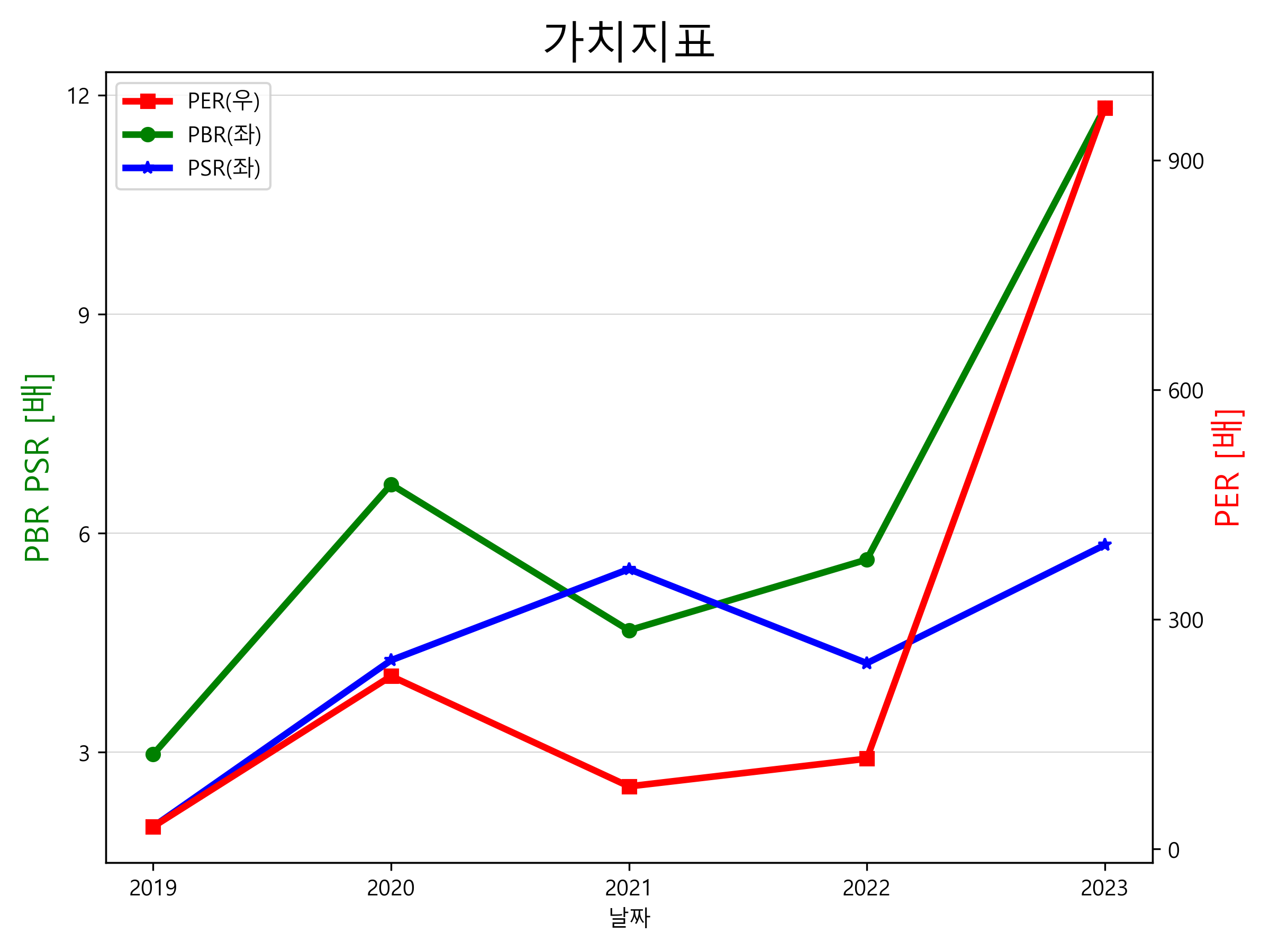 포스코퓨처엠의 PER, PBR, PSR입니다.
